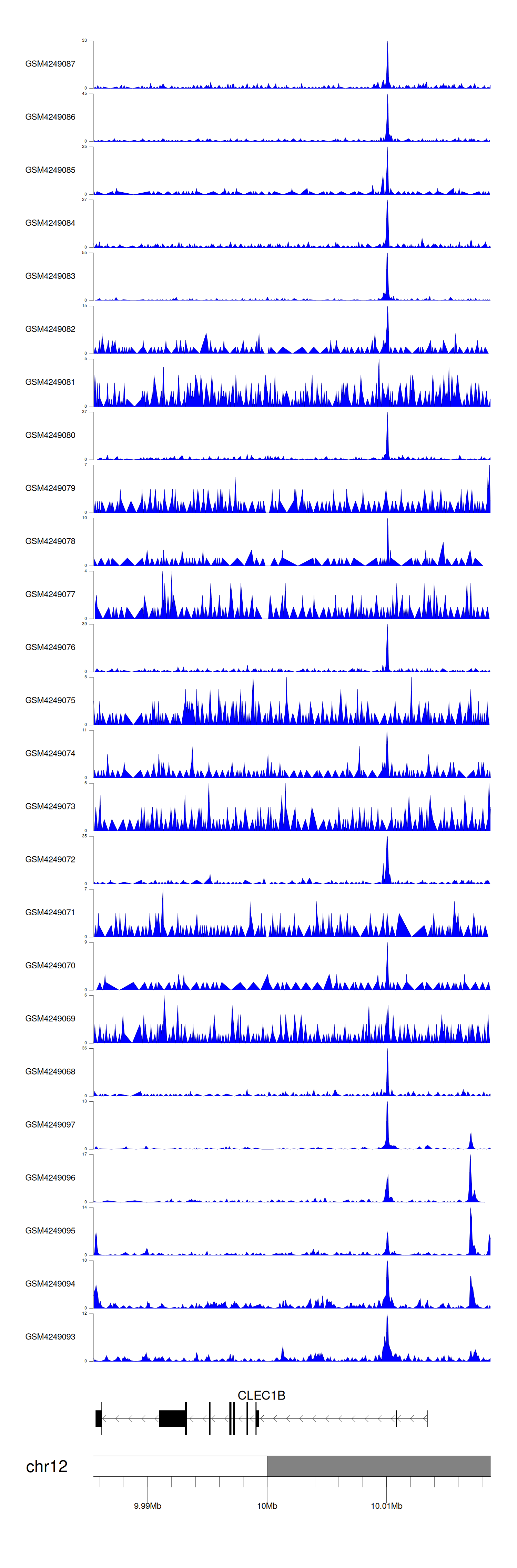 > Dataset: GSE143026 - CLEC1B peak across samples