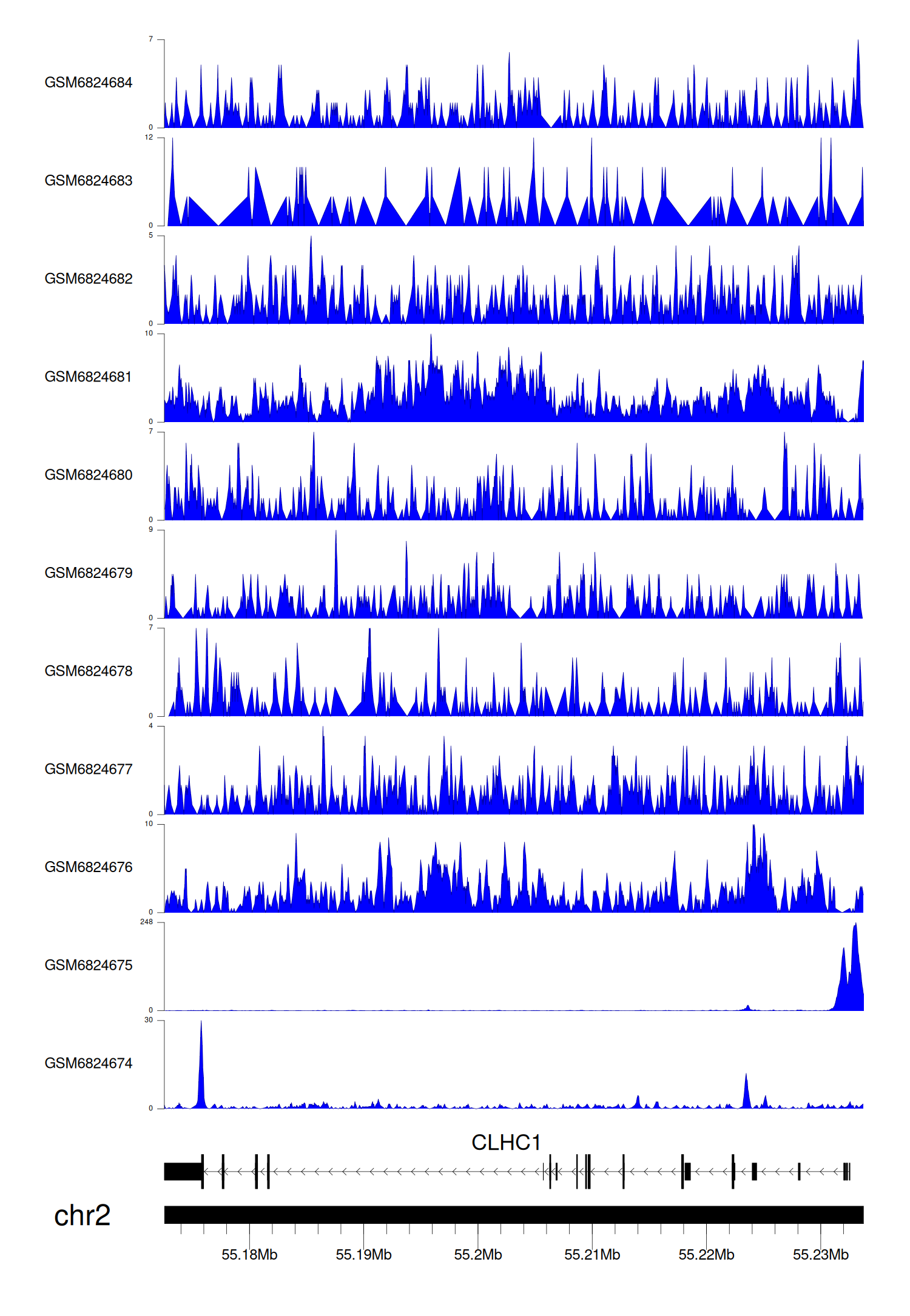 > Dataset: GSE144329 - CLHC1 peak across samples