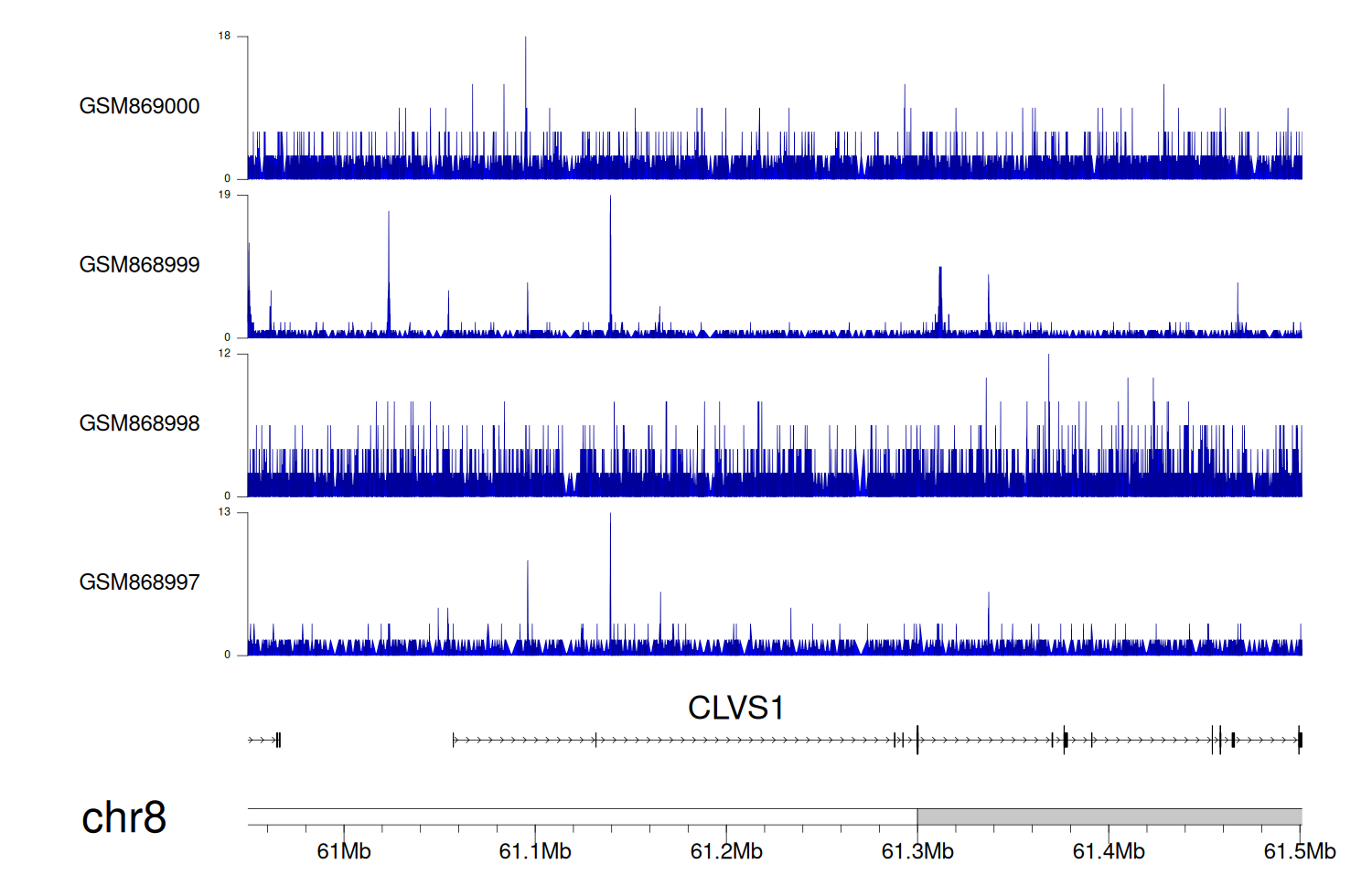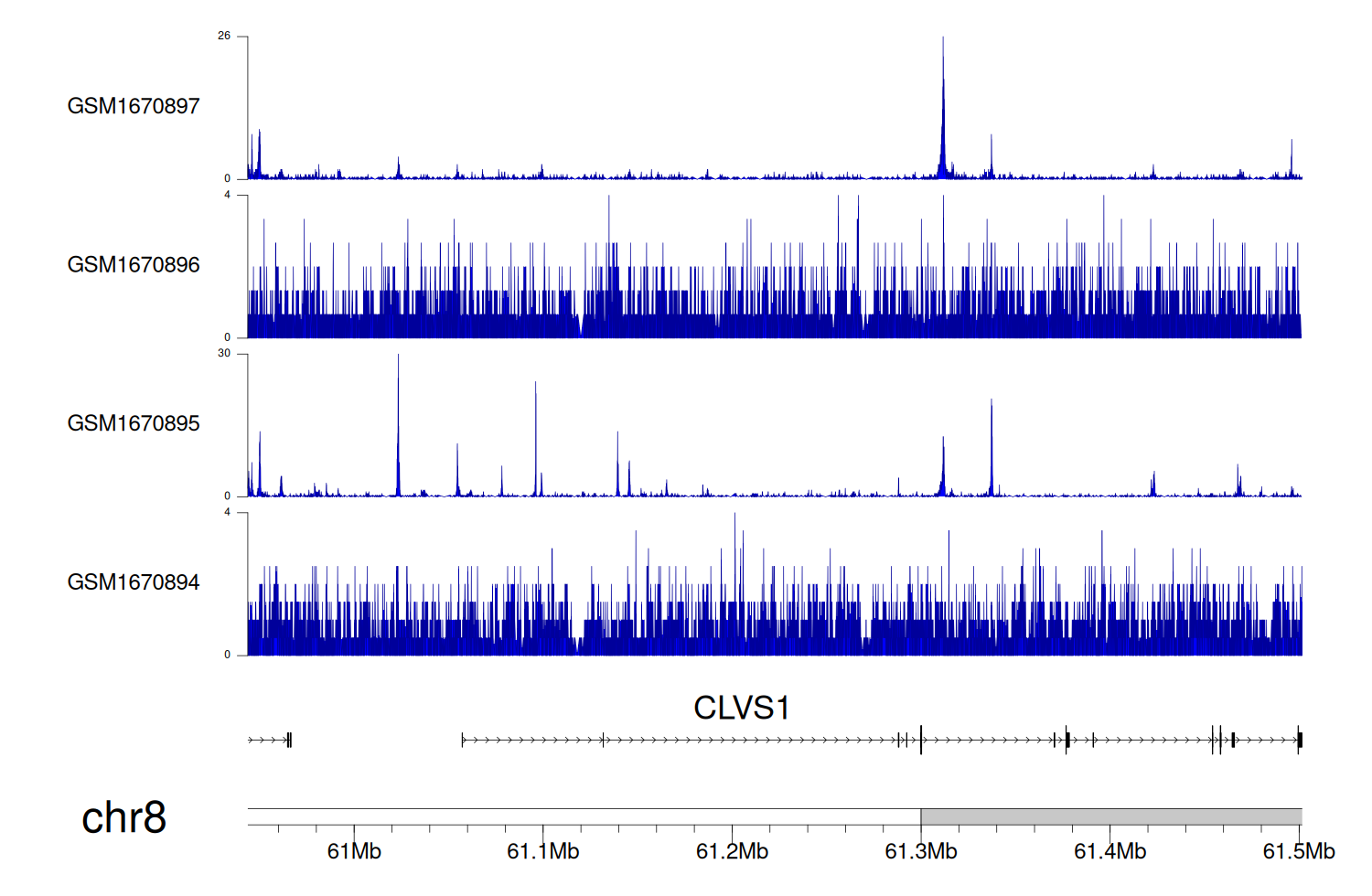 > Dataset: GSE68402 - CLVS1 peak across samples