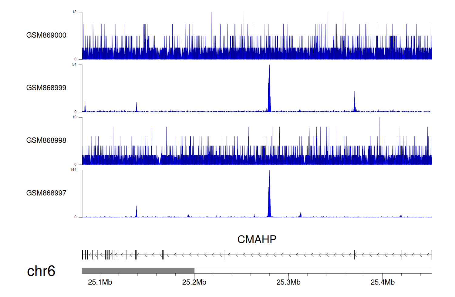 Sialic acids are terminal components of the carbohydrate chains of glycoconjugates involved in ligand-receptor, cell-cell, and cell-pathogen interactions. The two most common forms of sialic acid found in mammalian cells are N-acetylneuraminic acid (Neu5Ac) and its hydroxylated derivative, N-glycolylneuraminic acid (Neu5Gc). Studies of sialic acid distribution show that Neu5Gc is not detectable in normal human tissues although it was an abundant sialic acid in other mammals. Neu5Gc is, in actuality, immunogenic in humans. The absense of Neu5Gc in humans is due to a deletion within the human gene CMAH encoding cytidine monophosphate-N-acetylneuraminic acid hydroxylase, an enzyme responsible for Neu5Gc biosynthesis. Sequences encoding the mouse, pig, and chimpanzee hydroxylase enzymes were obtained by cDNA cloning and found to be highly homologous. However, the homologous human cDNA differs from these cDNAs by a 92-bp deletion in the 5' region. This deletion, corresponding to exon 6 of the mouse hydroxylase gene, causes a frameshift mutation and premature termination of the polypeptide chain in human. It seems unlikely that the truncated human hydroxylase mRNA encodes for an active enzyme explaining why Neu5Gc is undetectable in normal human tissues. Human genomic DNA also shows evidence of this deletion which does not occur in the genomes of African great apes. Nonetheless, the CMAH gene maps to 6p21.32 in humans and great apes indicating that mutation of the CMAH gene occurred following human divergence from chimpanzees and bonobos. [provided by RefSeq, Jul 2008] |