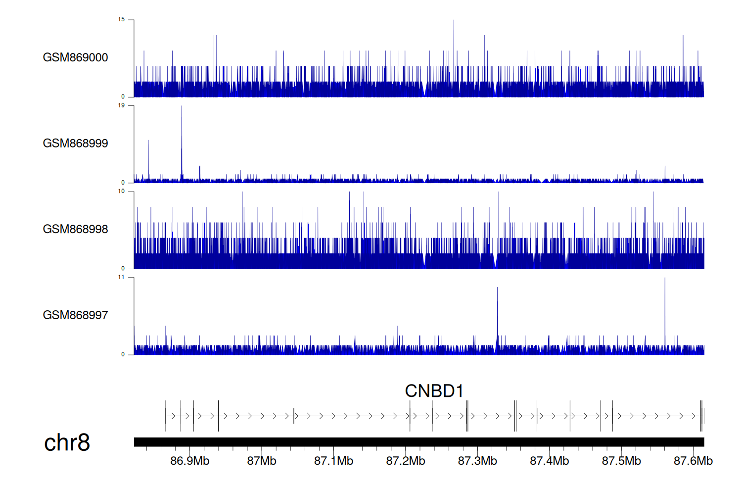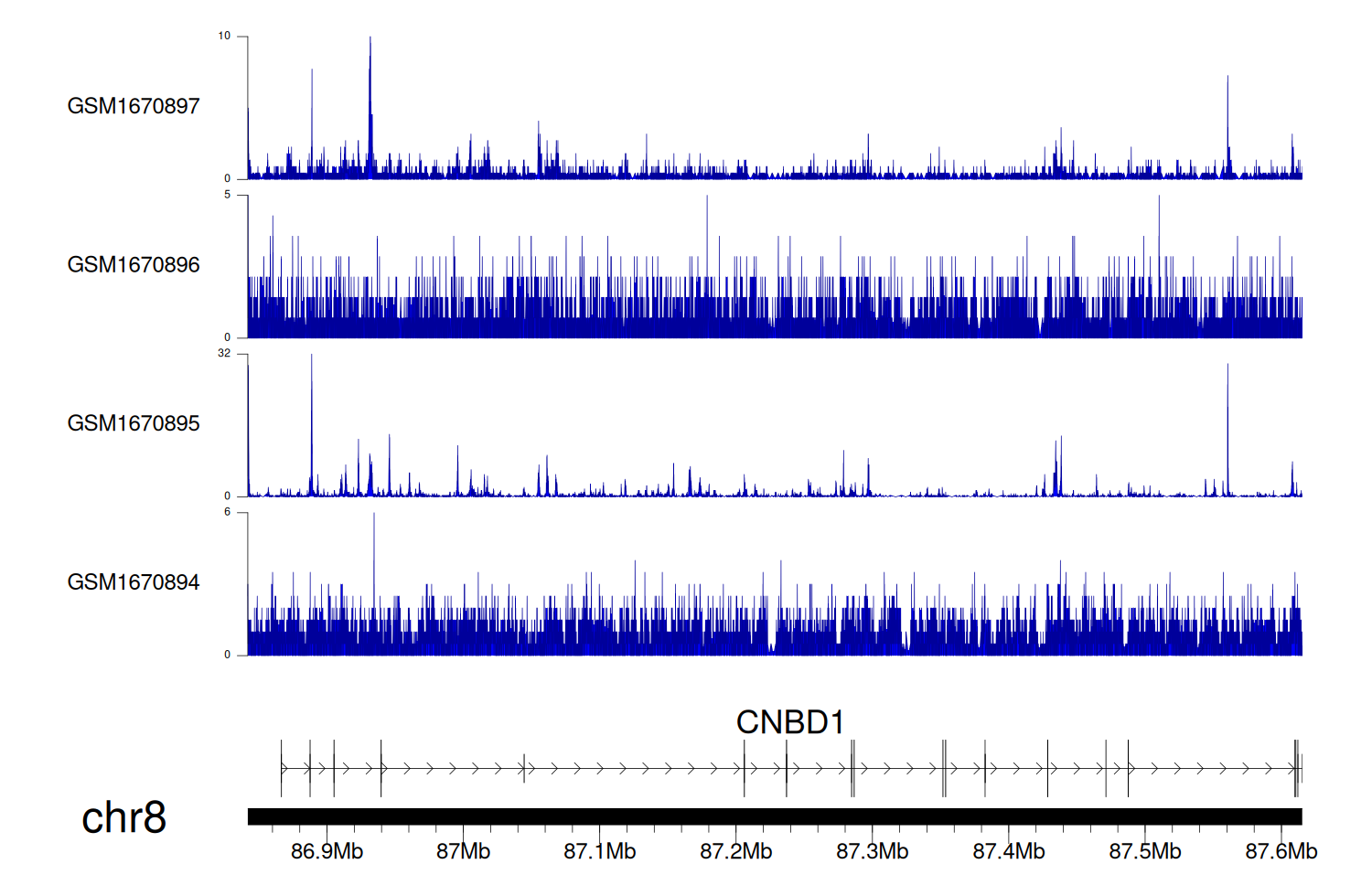 > Dataset: GSE68402 - CNBD1 peak across samples
