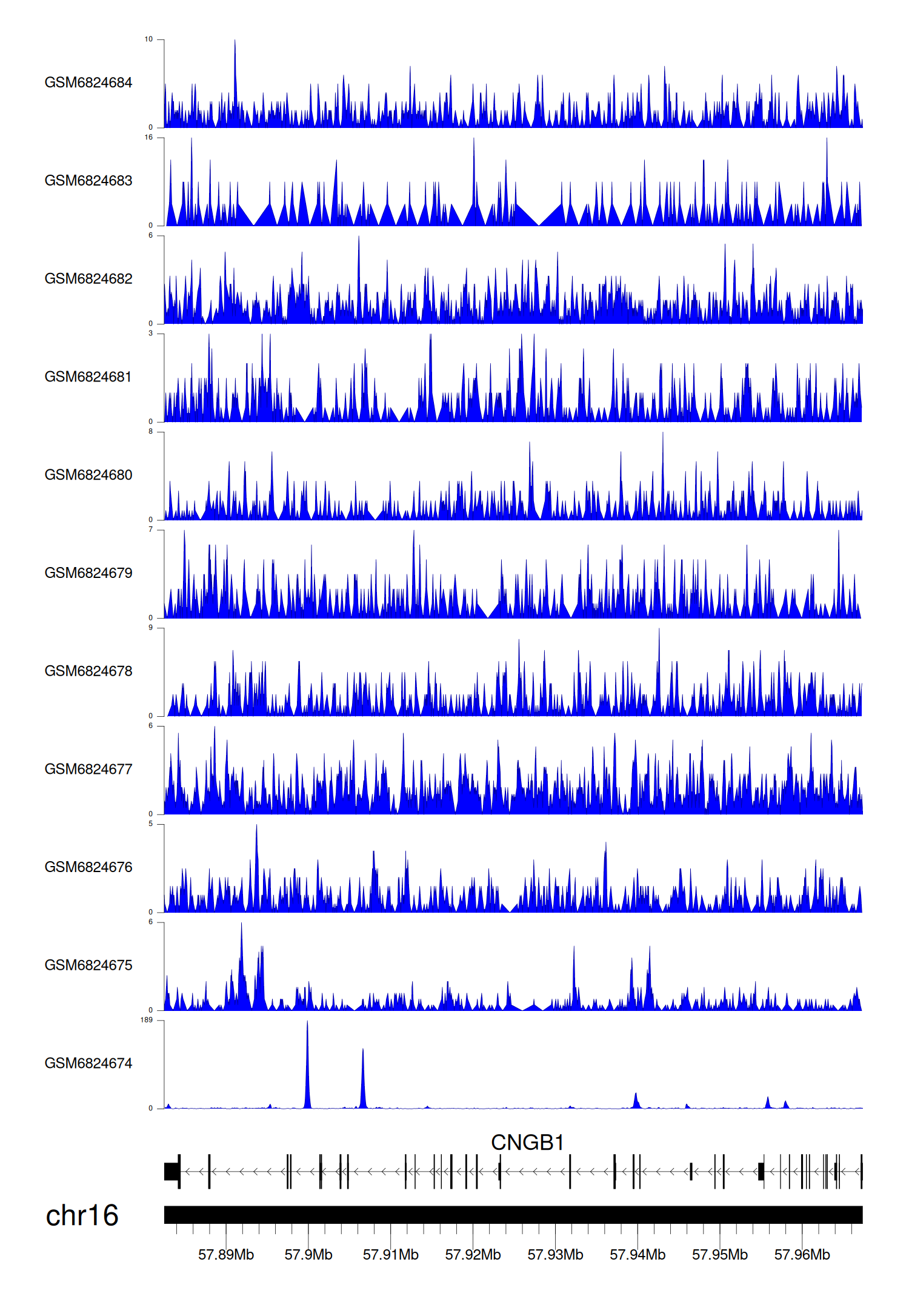 > Dataset: GSE144329 - CNGB1 peak across samples