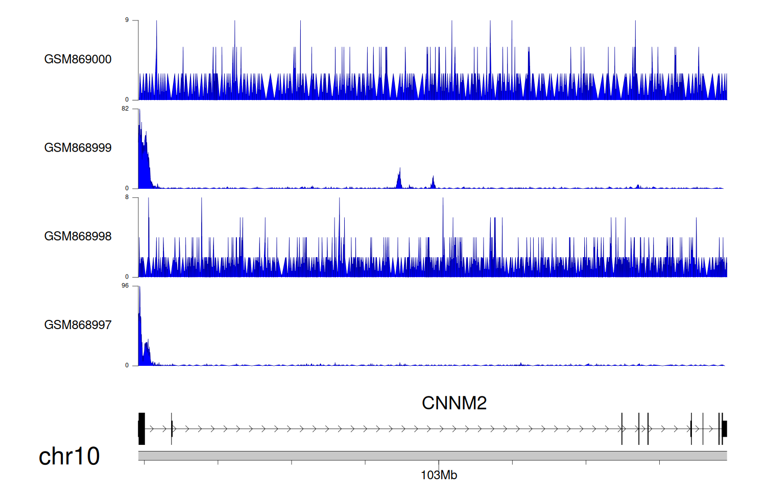 > Dataset: GSE68402 - CNNM2 peak across samples