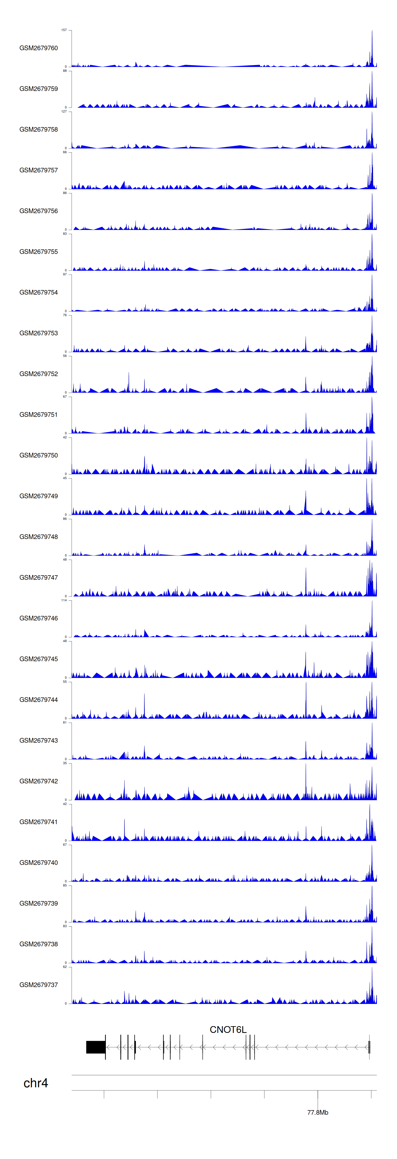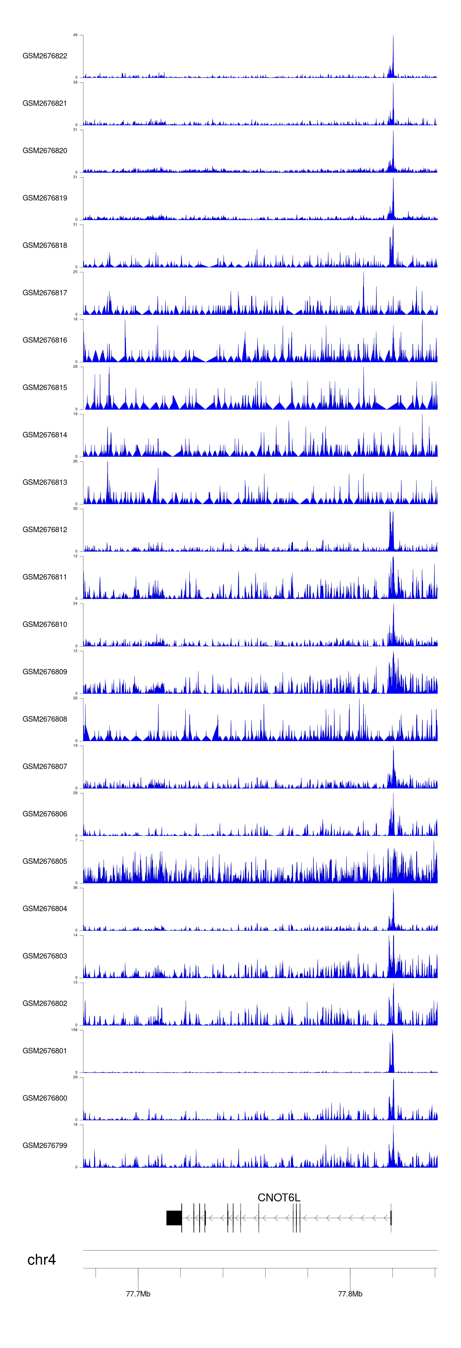 > Dataset: GSE100376 - CNOT6L peak across samples