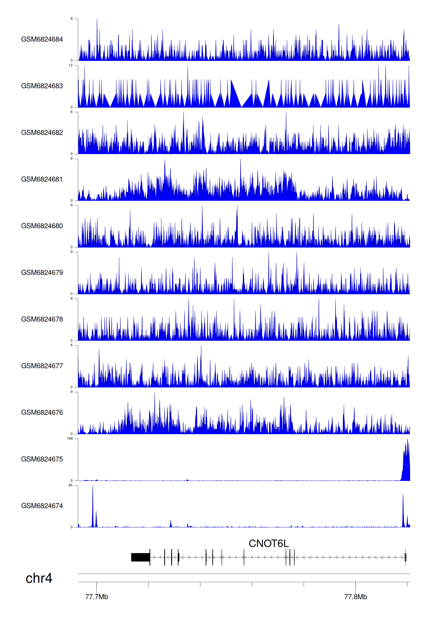 > Dataset: GSE165703 - CNOT6L peak across samples
