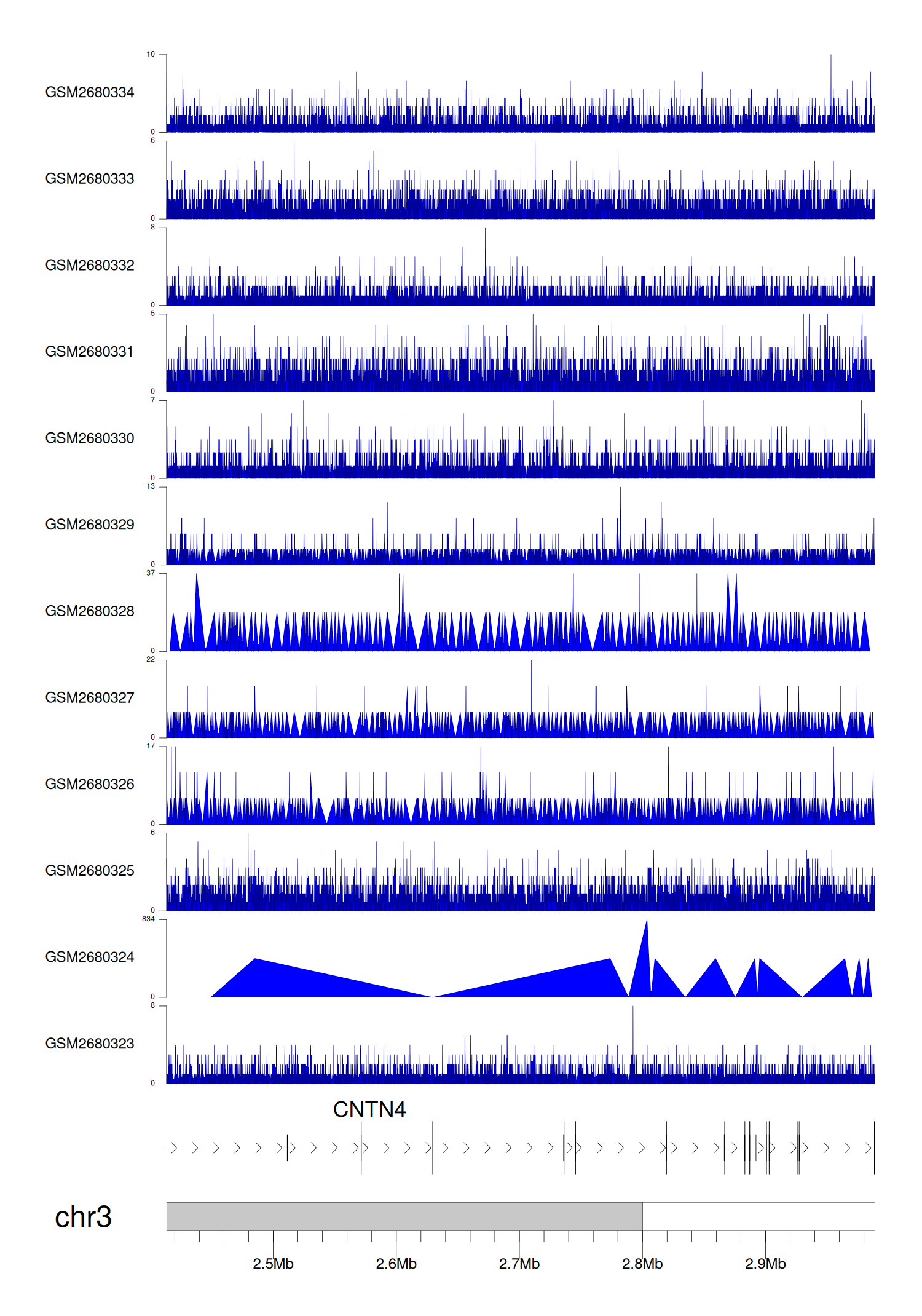 > Dataset: GSE68402 - CNTN4 peak across samples