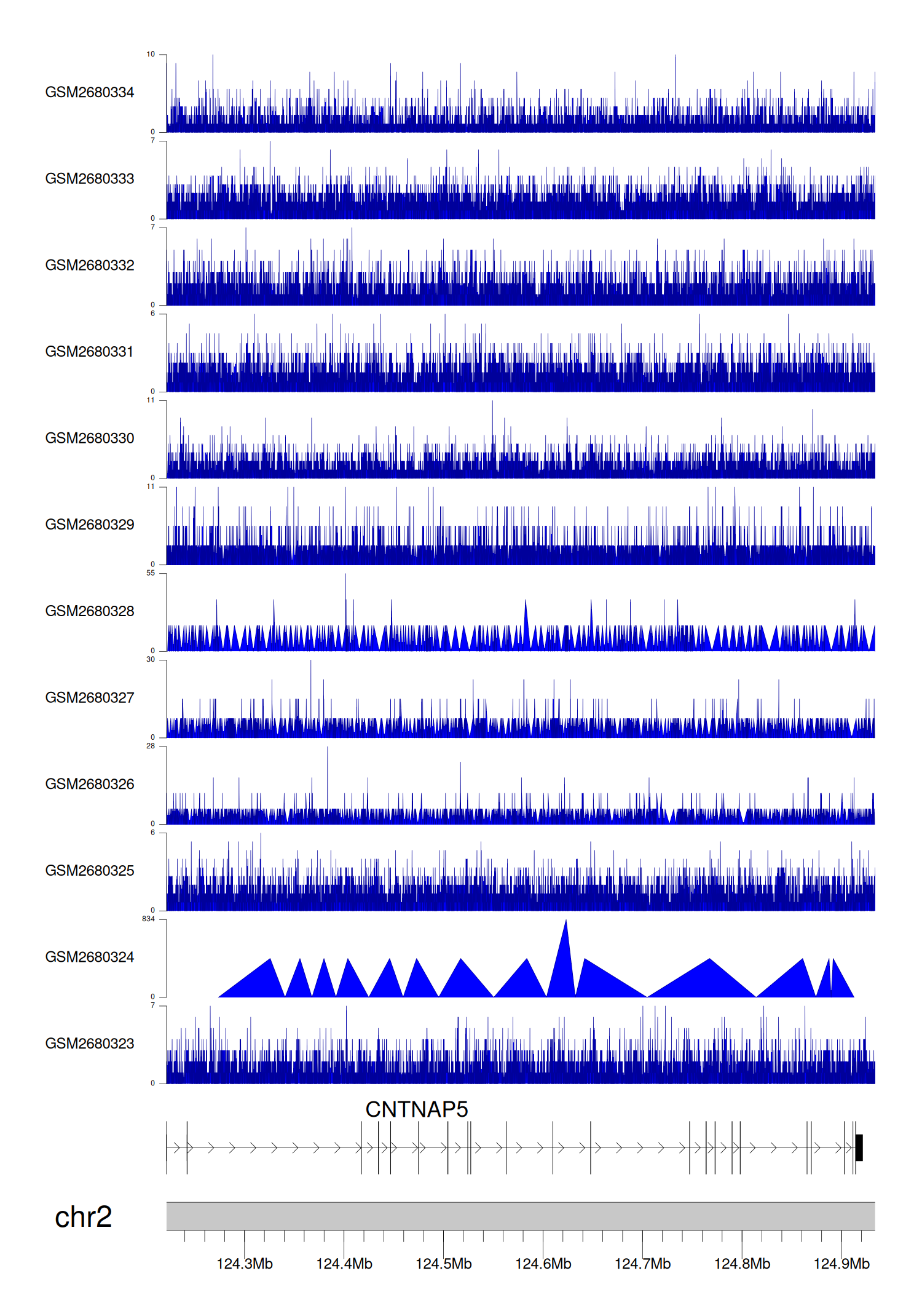 > Dataset: GSE68402 - CNTNAP5 peak across samples