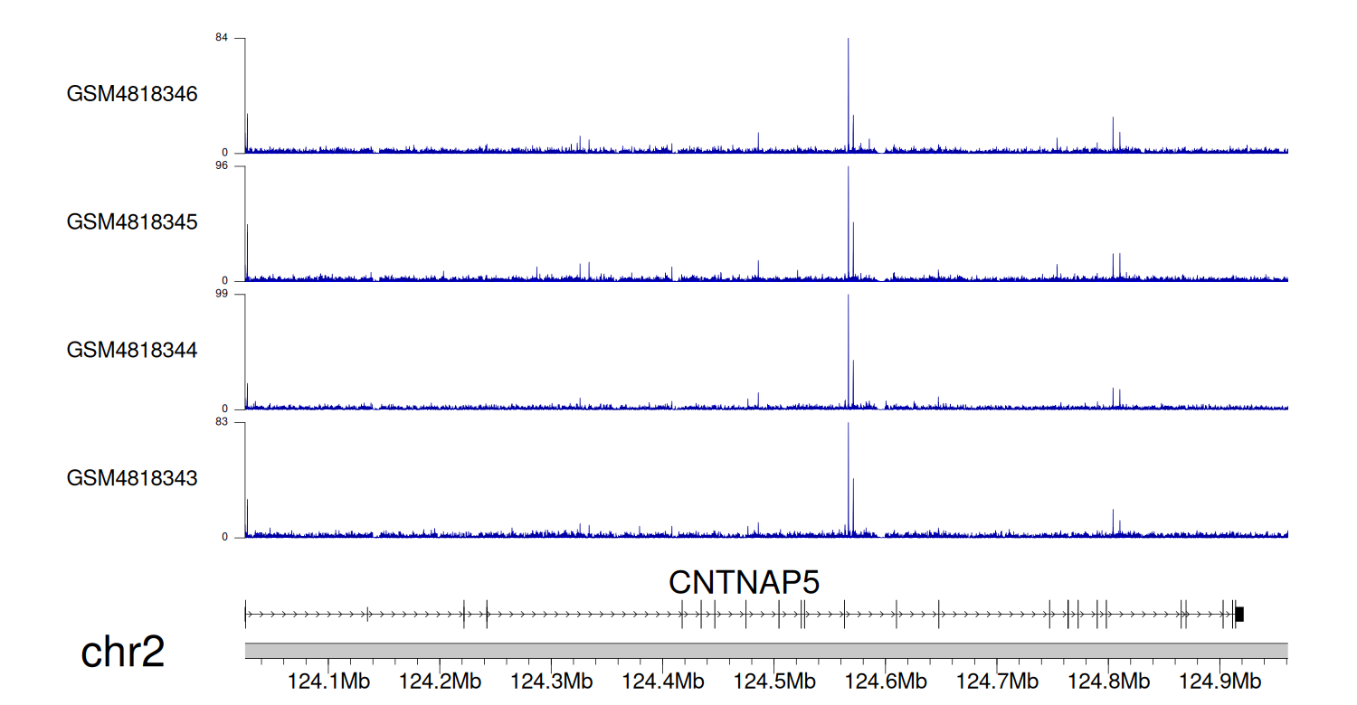 > Dataset: GSE131257 - CNTNAP5 peak across samples