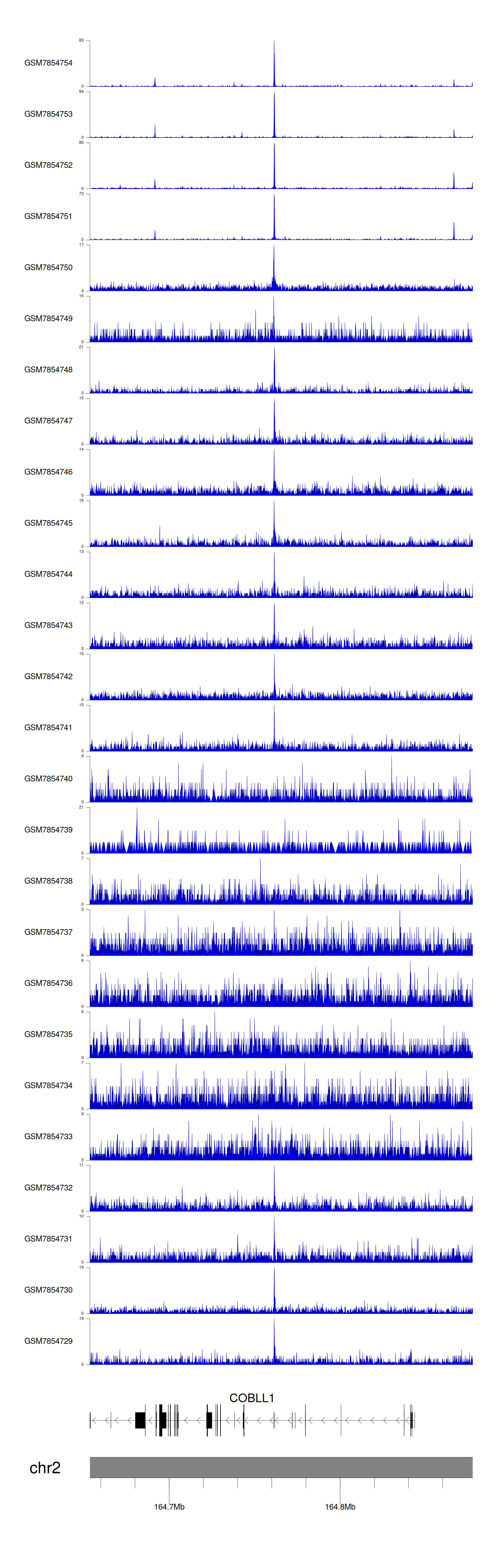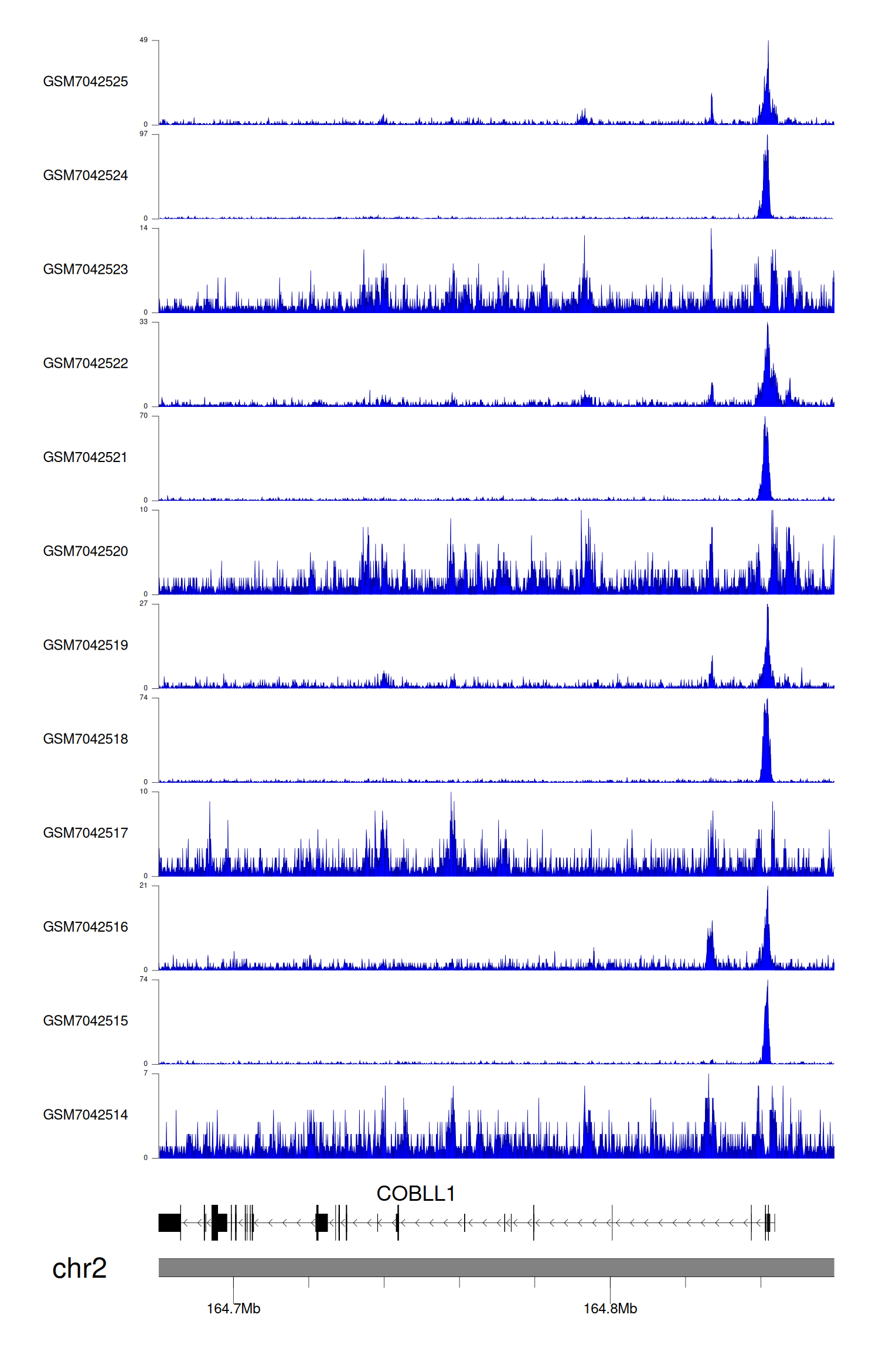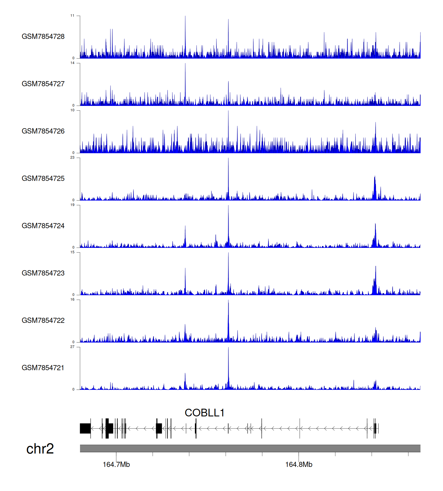 > Dataset: GSE198334 - COBLL1 peak across samples