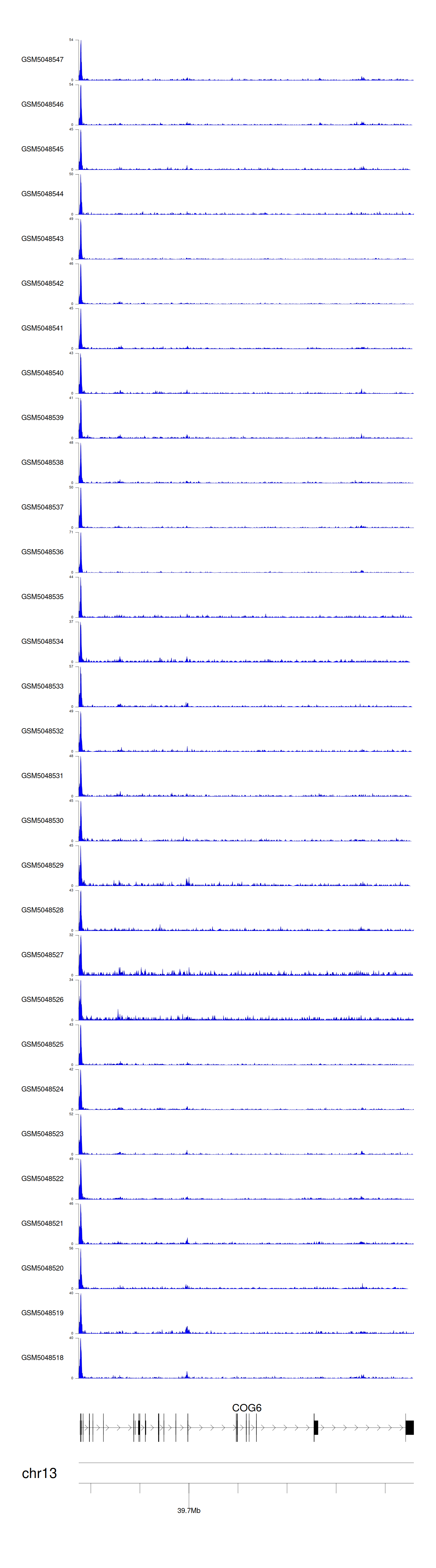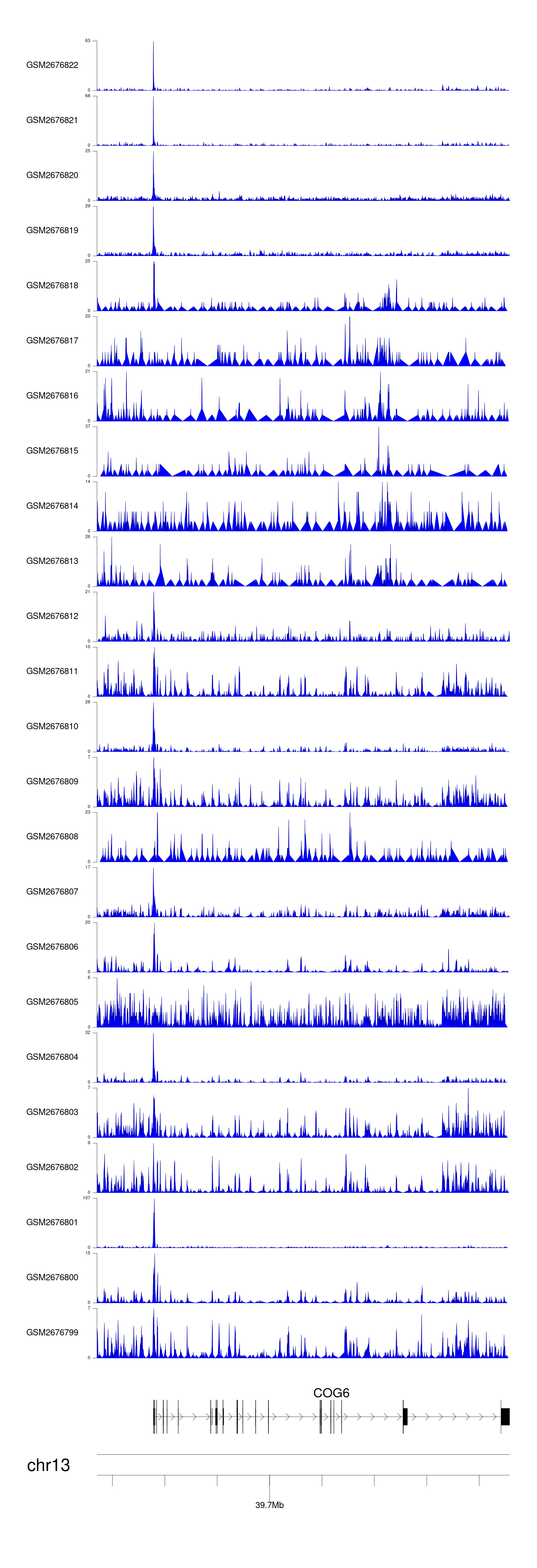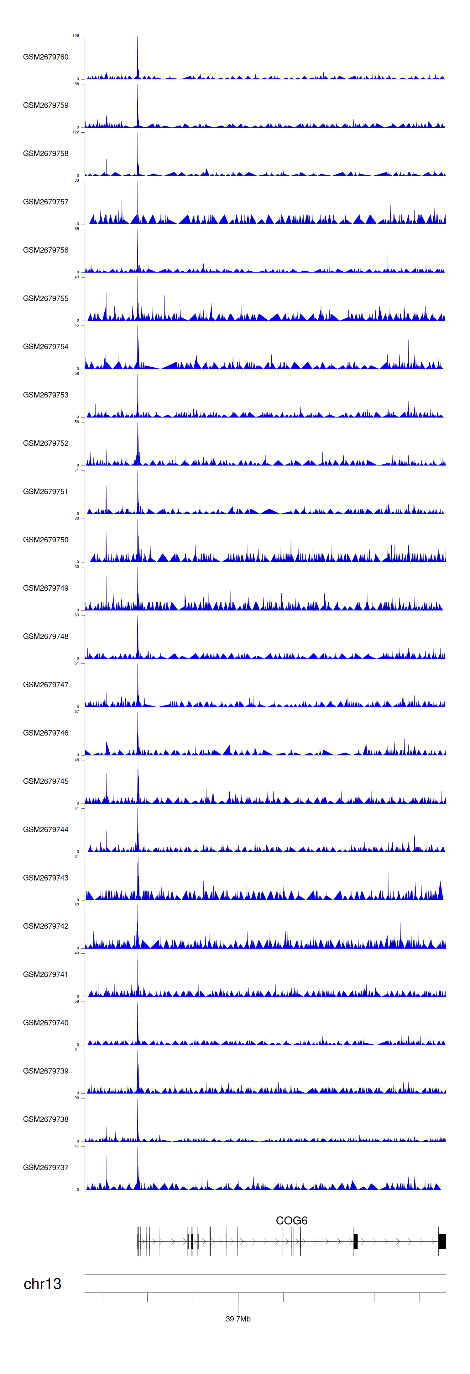 > Dataset: GSE30738 - COG6 peak across samples