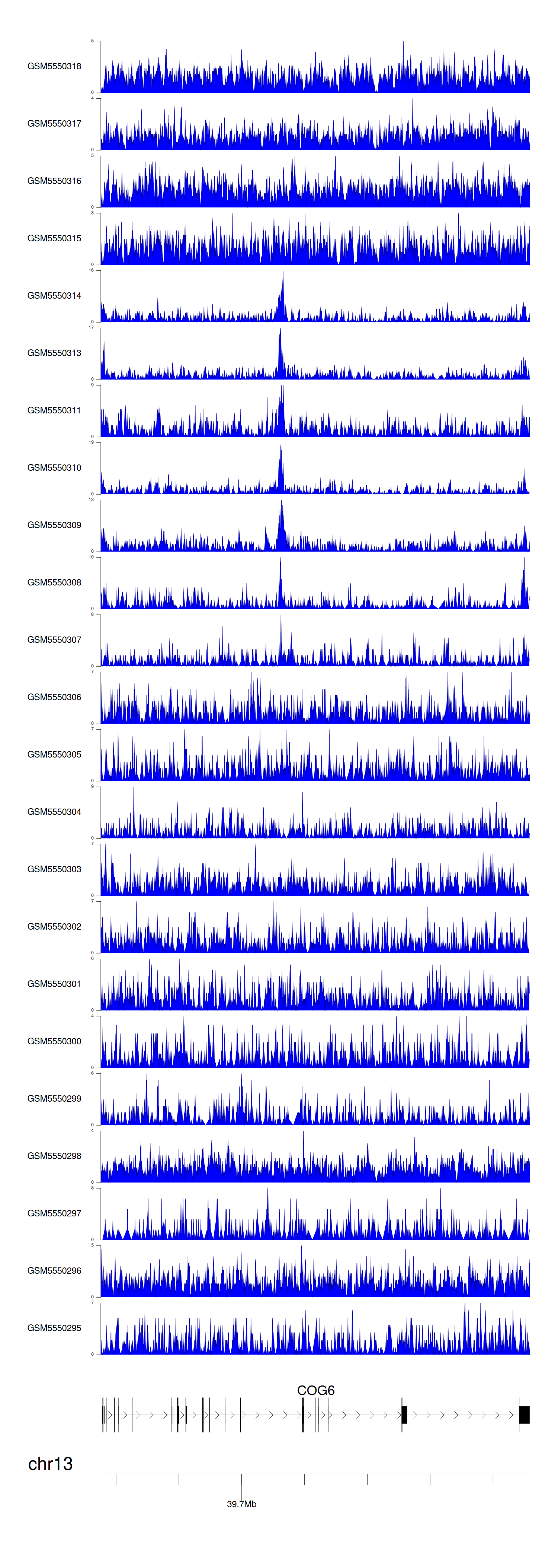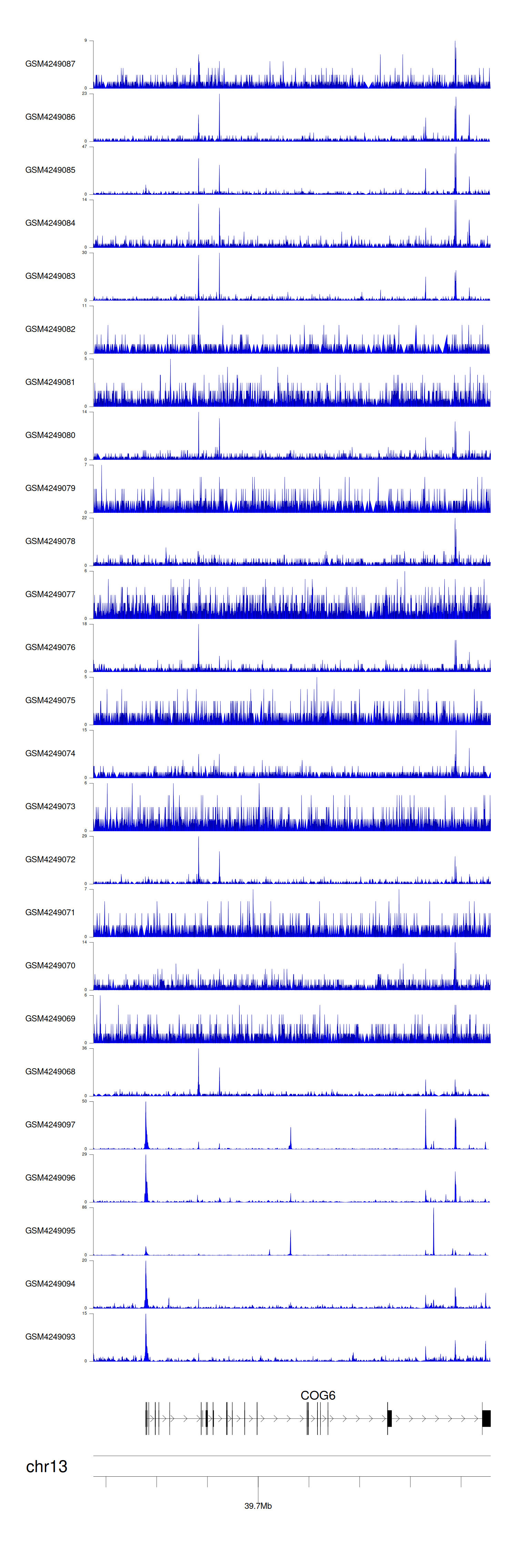 > Dataset: GSE143026 - COG6 peak across samples