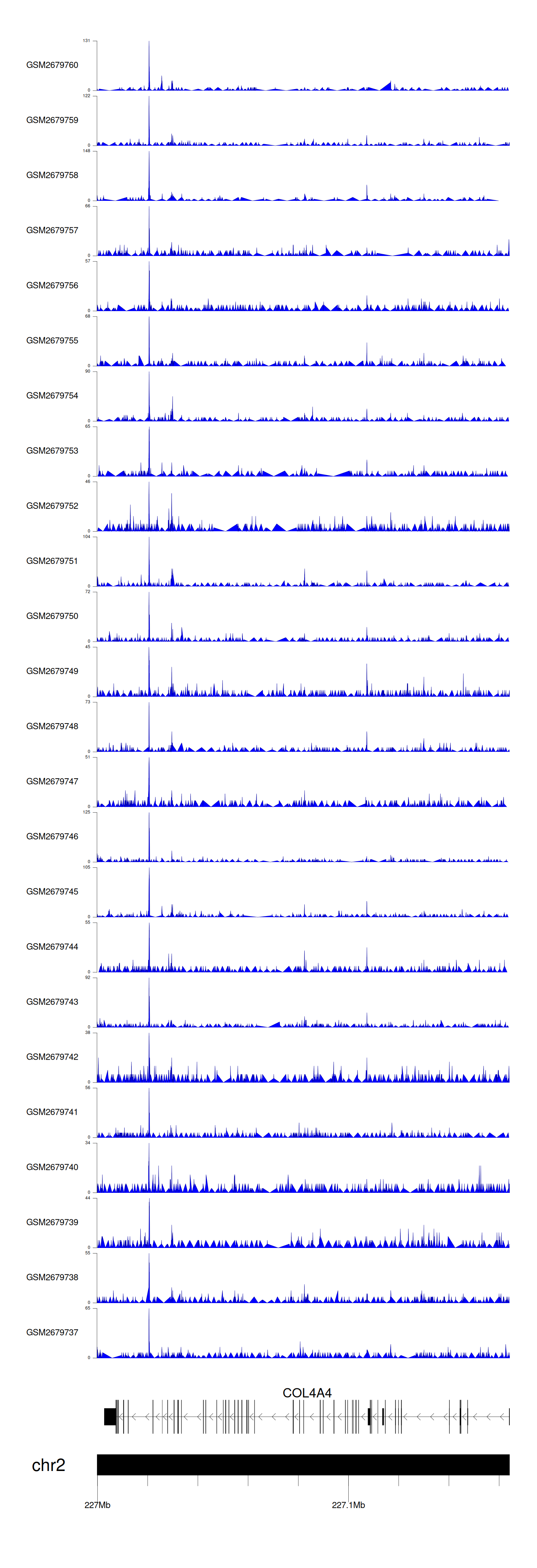 > Dataset: GSE100266 - COL4A4 peak across samples