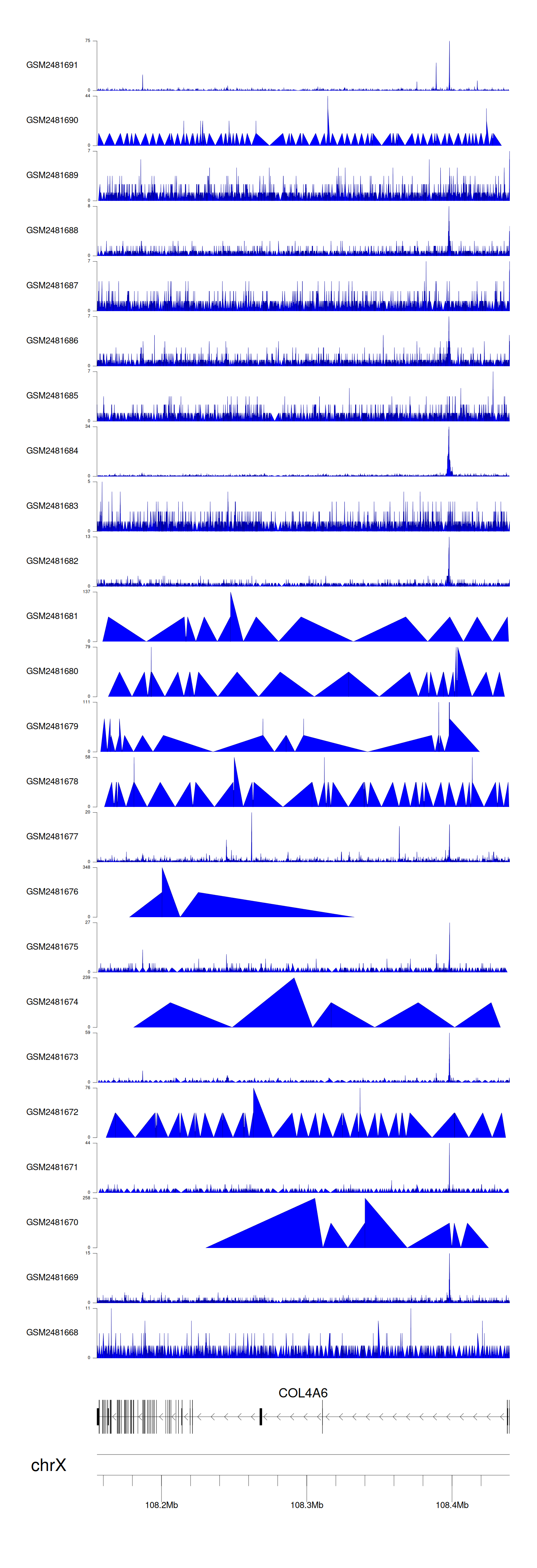 Target gene [COL4A6] related to VISs
