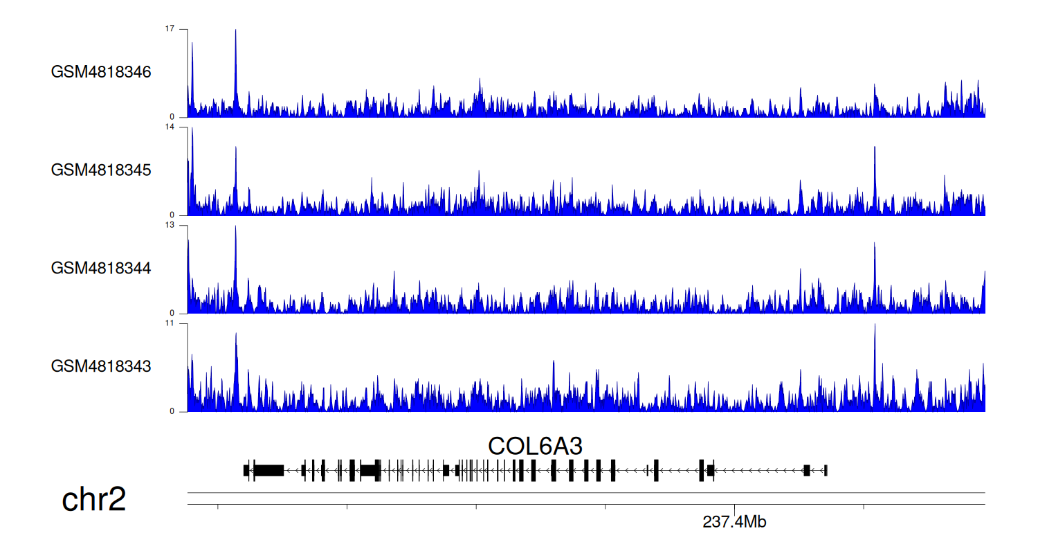 > Dataset: GSE68402 - COL6A3 peak across samples