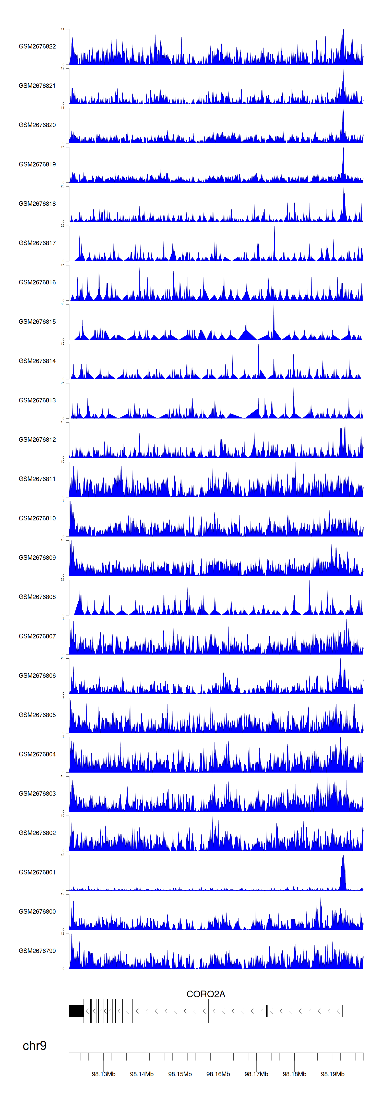 > Dataset: GSE100266 - CORO2A peak across samples