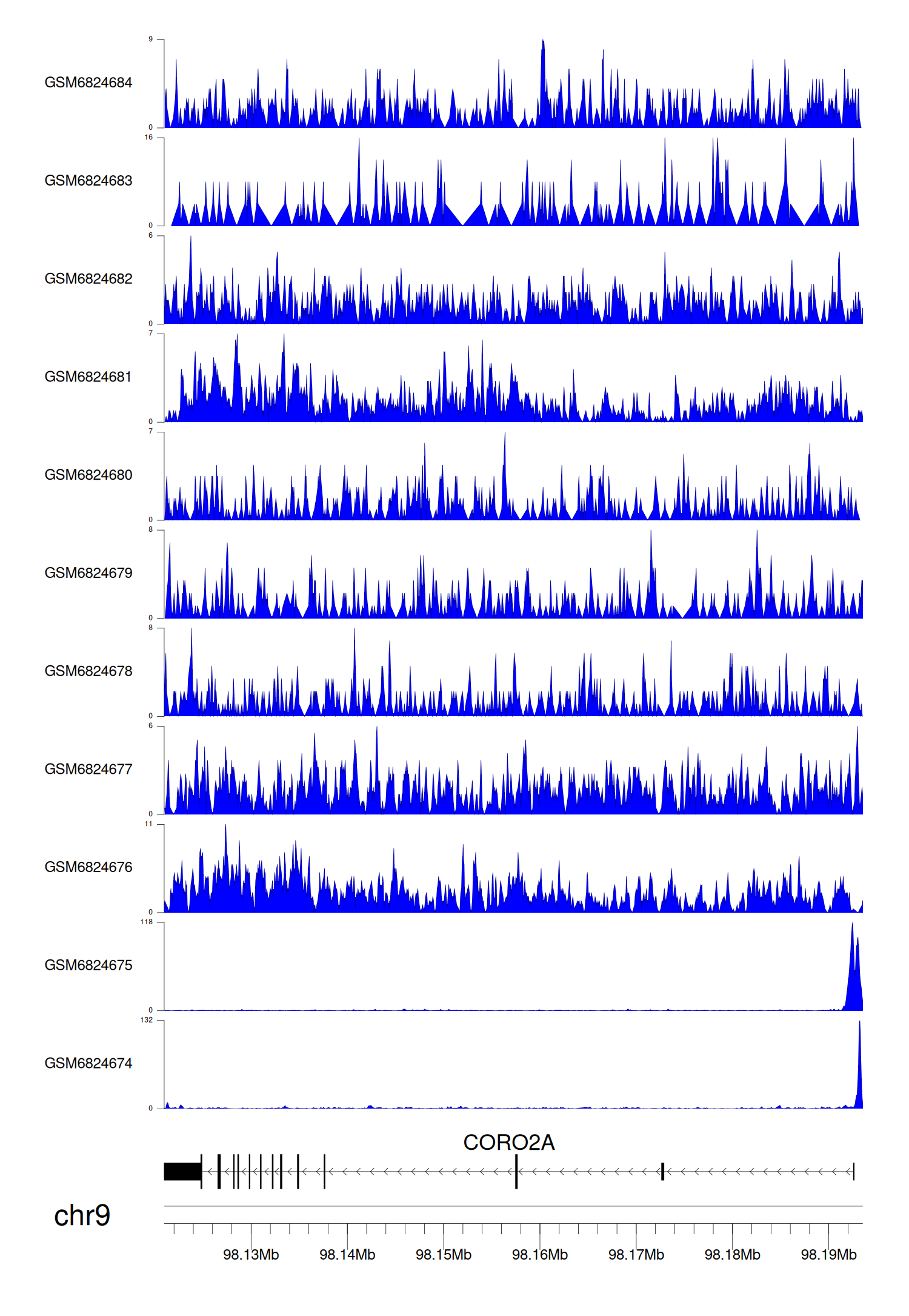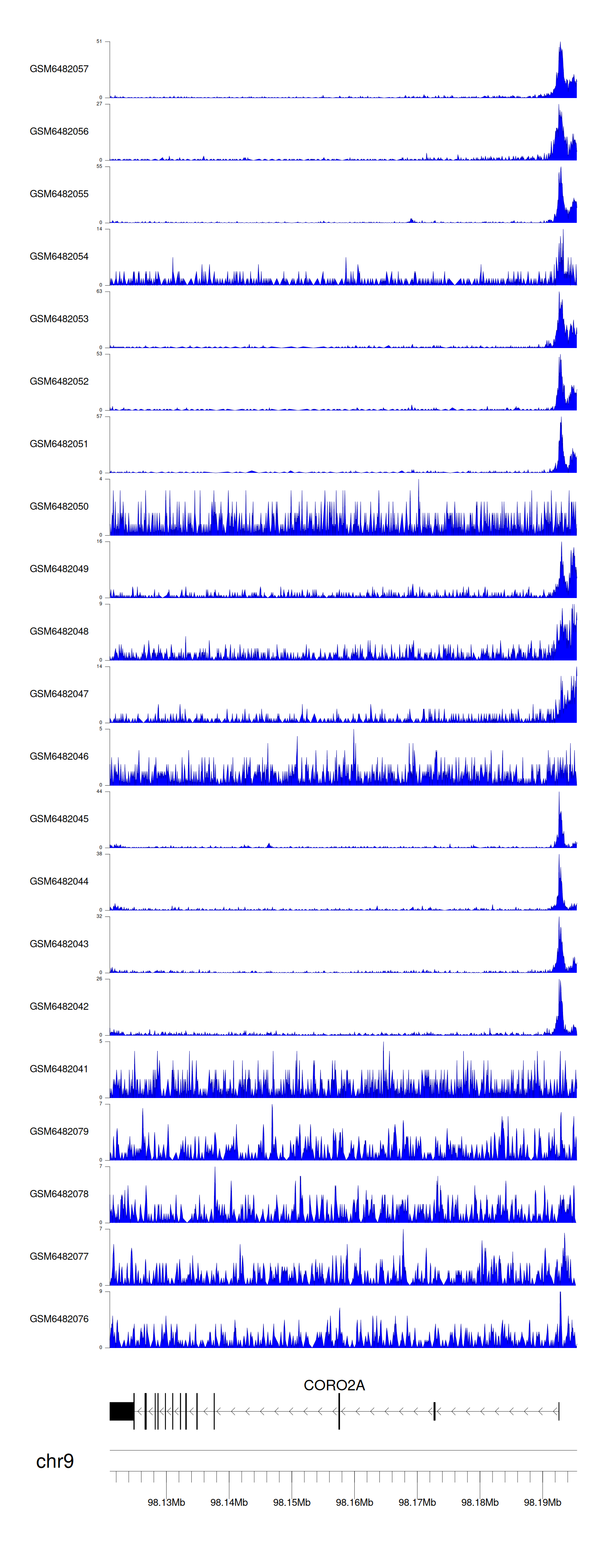 > Dataset: GSE220859 - CORO2A peak across samples