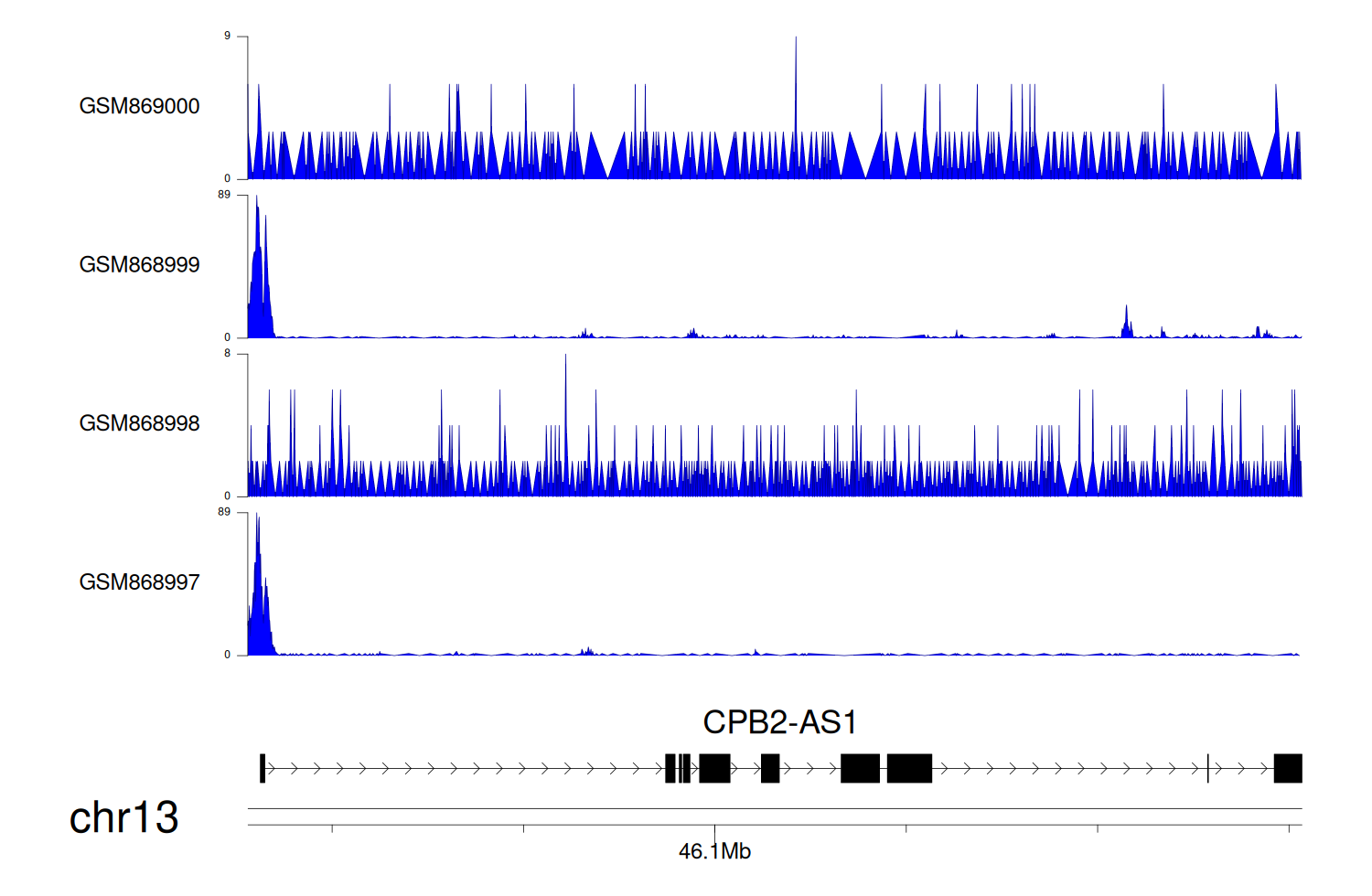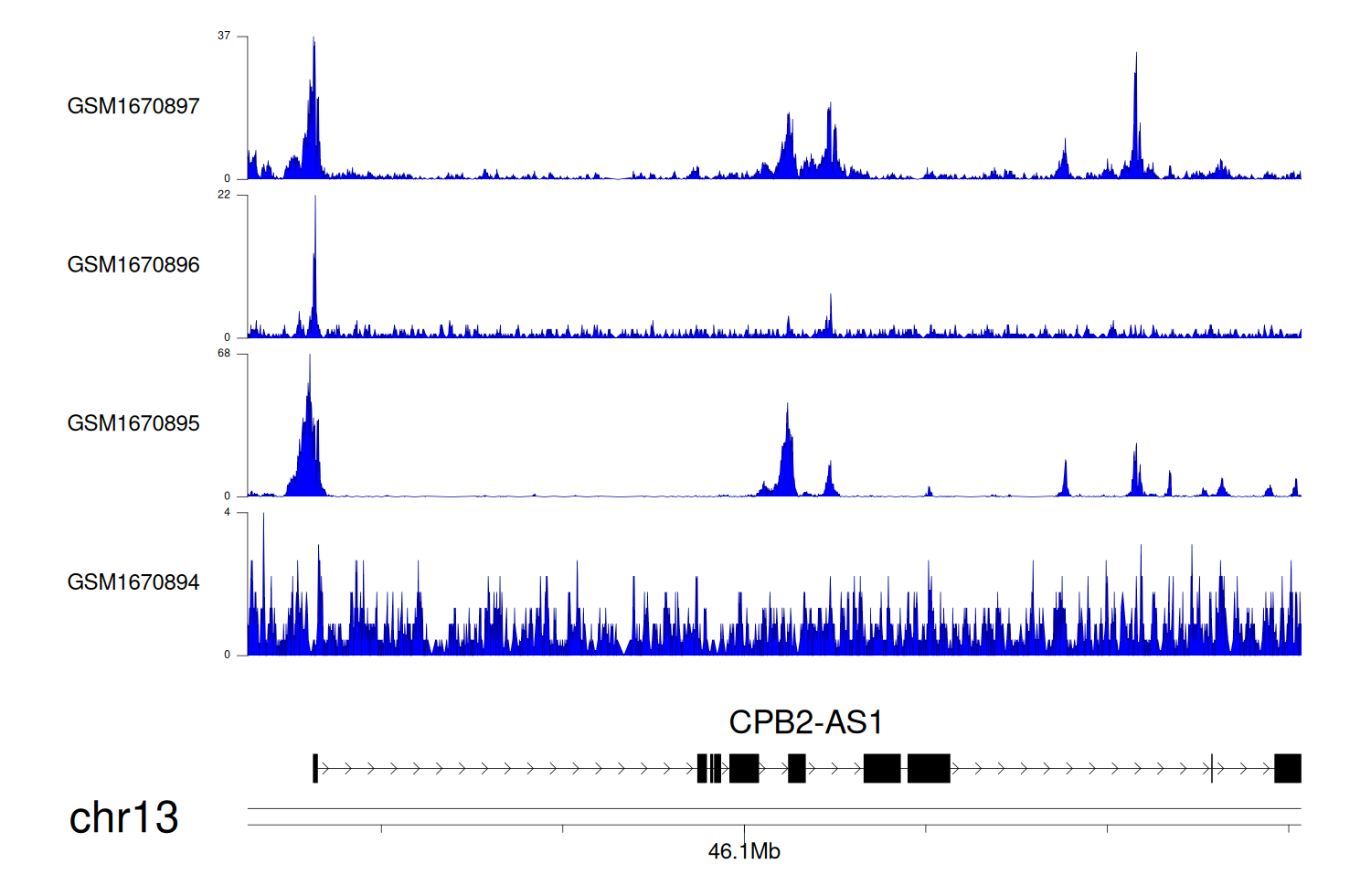 > Dataset: GSE68402 - CPB2-AS1 peak across samples