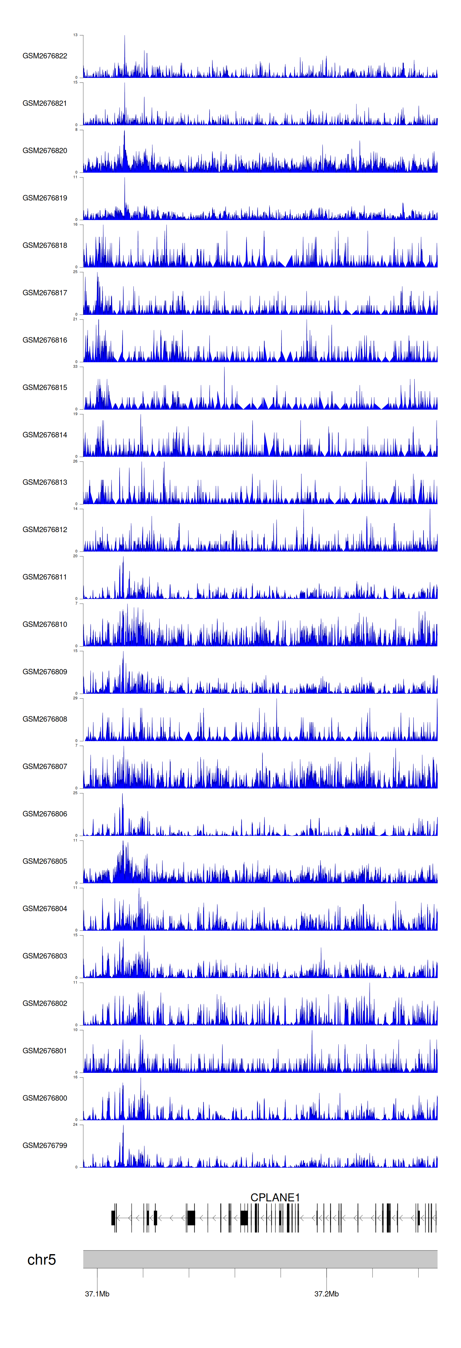 > Dataset: GSE100376 - CPLANE1 peak across samples