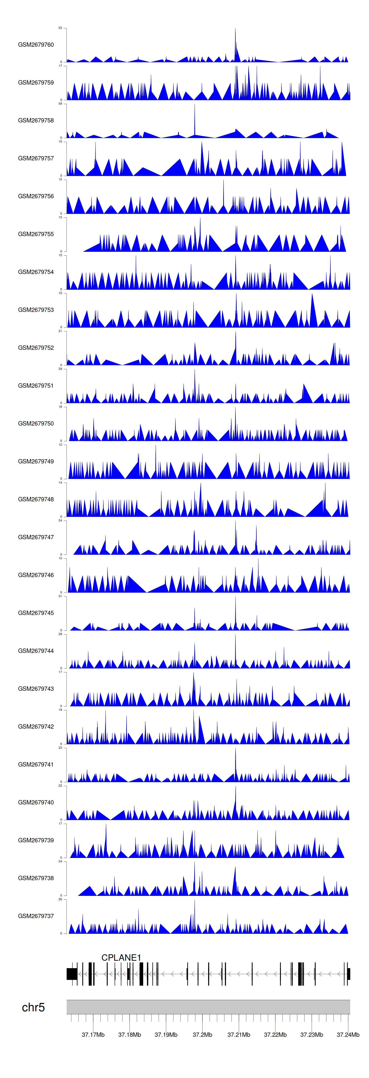 > Dataset: GSE30738 - CPLANE1 peak across samples