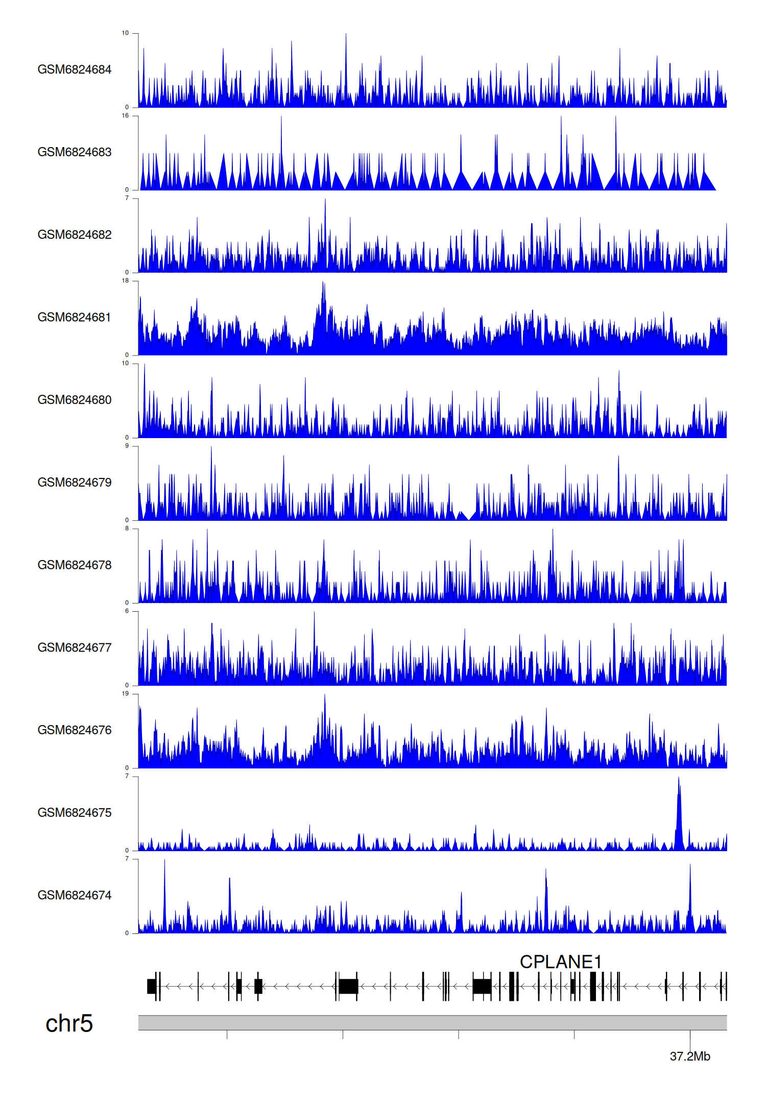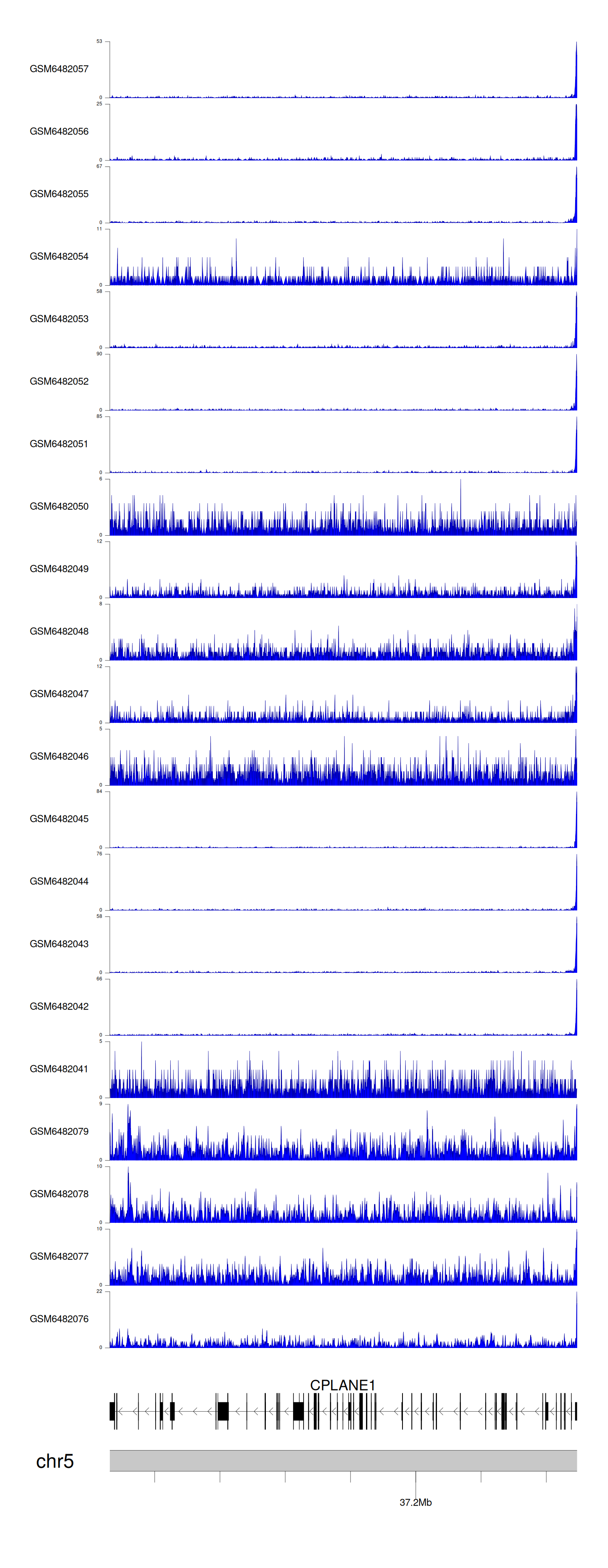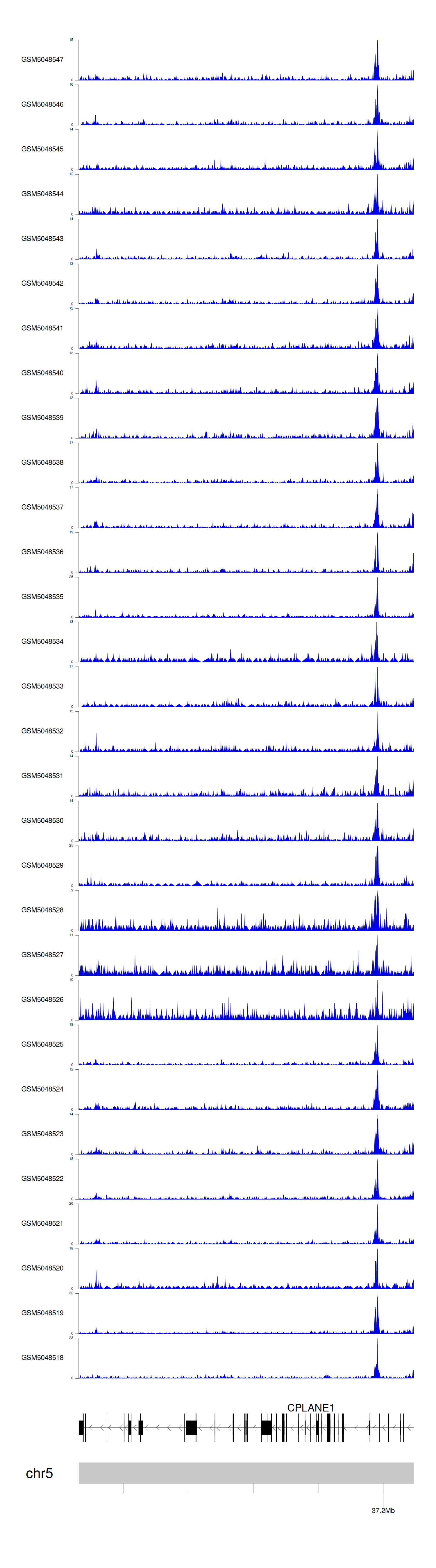 > Dataset: GSE165705 - CPLANE1 peak across samples