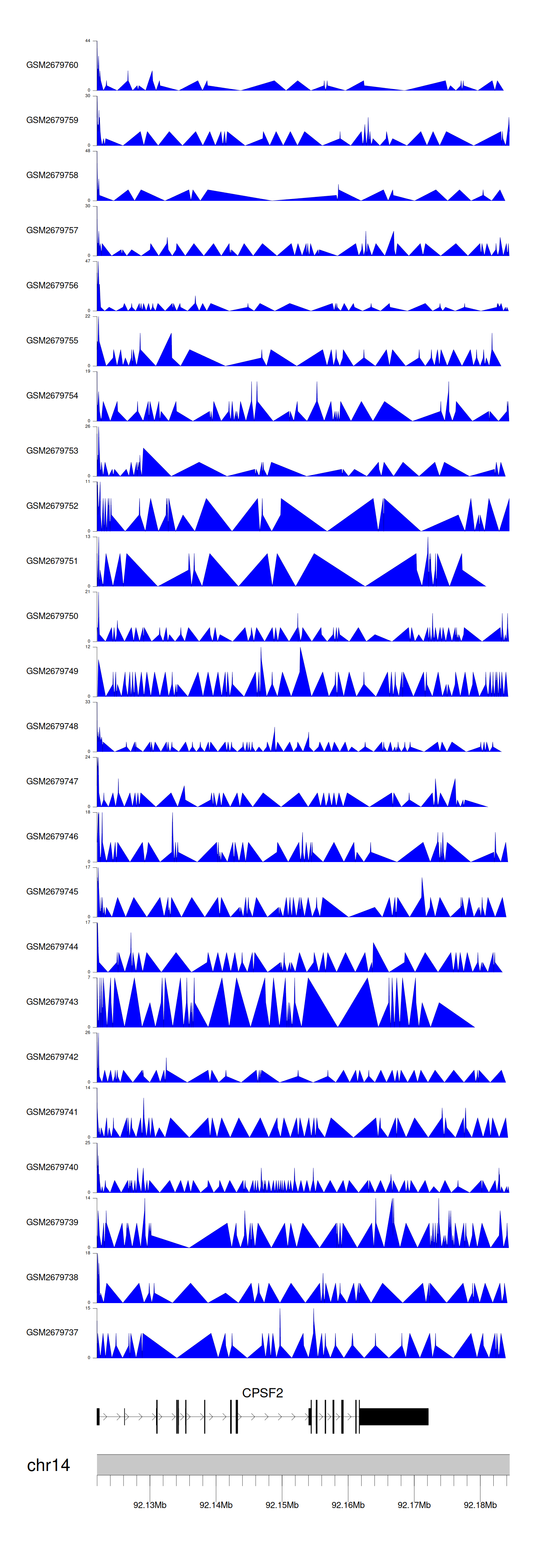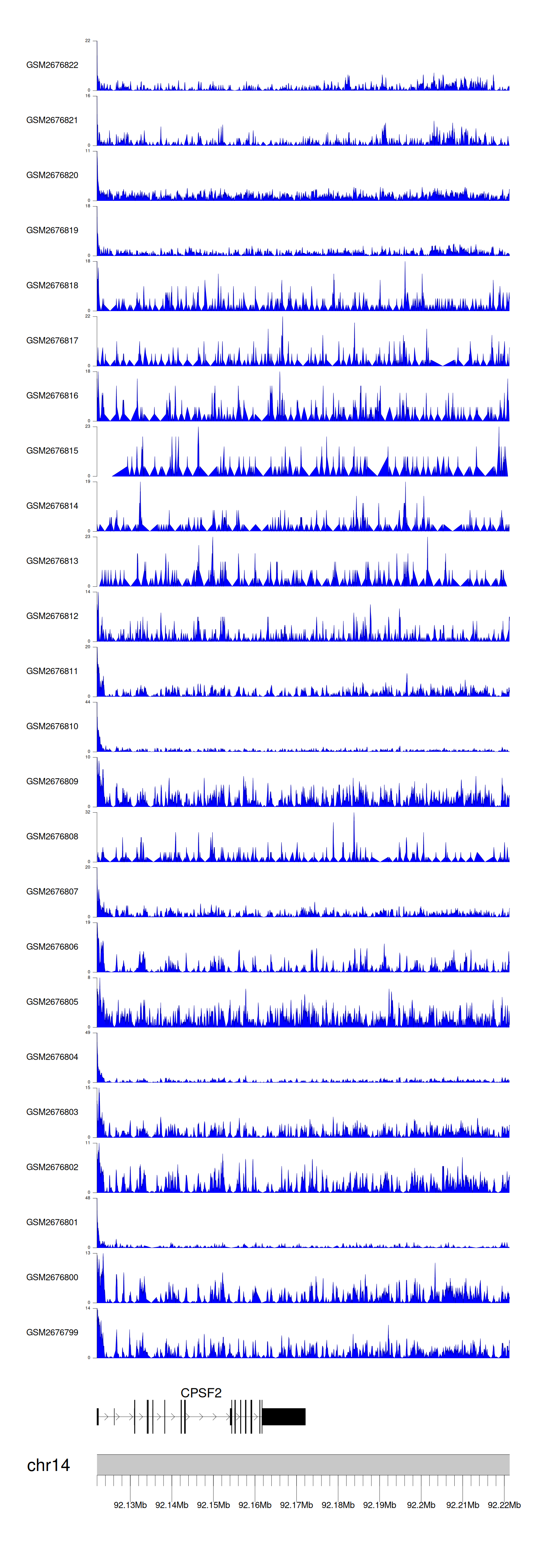 > Dataset: GSE100376 - CPSF2 peak across samples