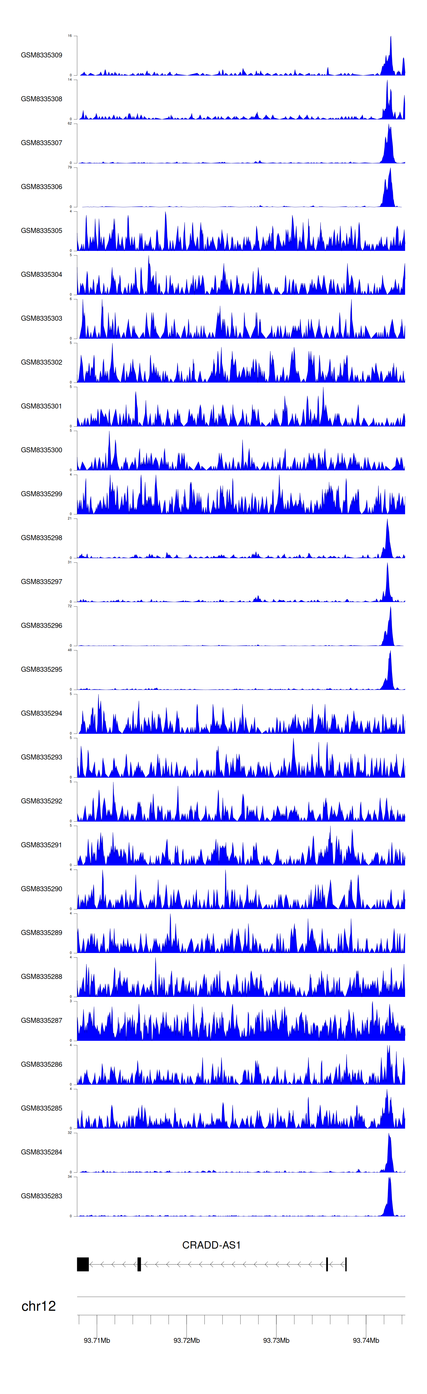 > Dataset: GSE131257 - CRADD-AS1 peak across samples