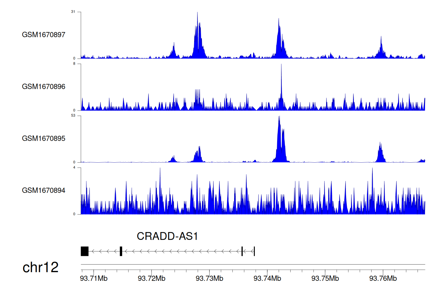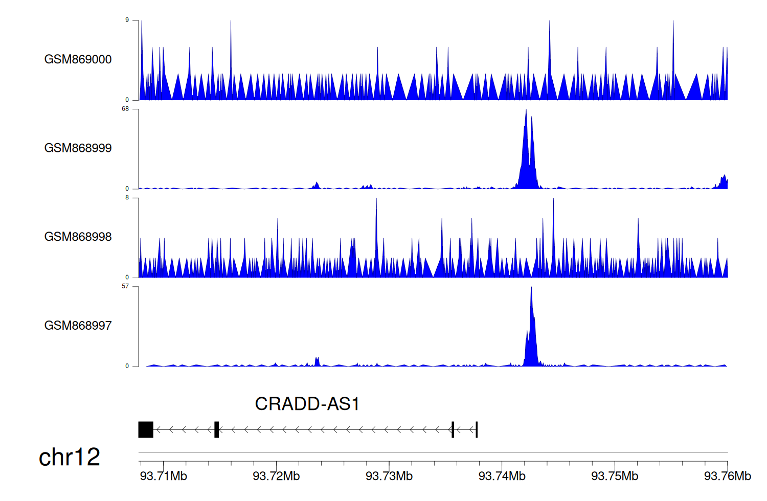 > Dataset: GSE68402 - CRADD-AS1 peak across samples