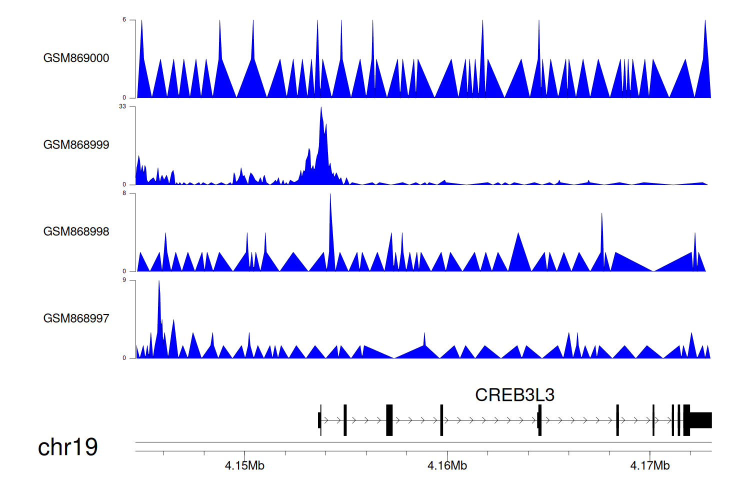 > Dataset: GSE68402 - CREB3L3 peak across samples
