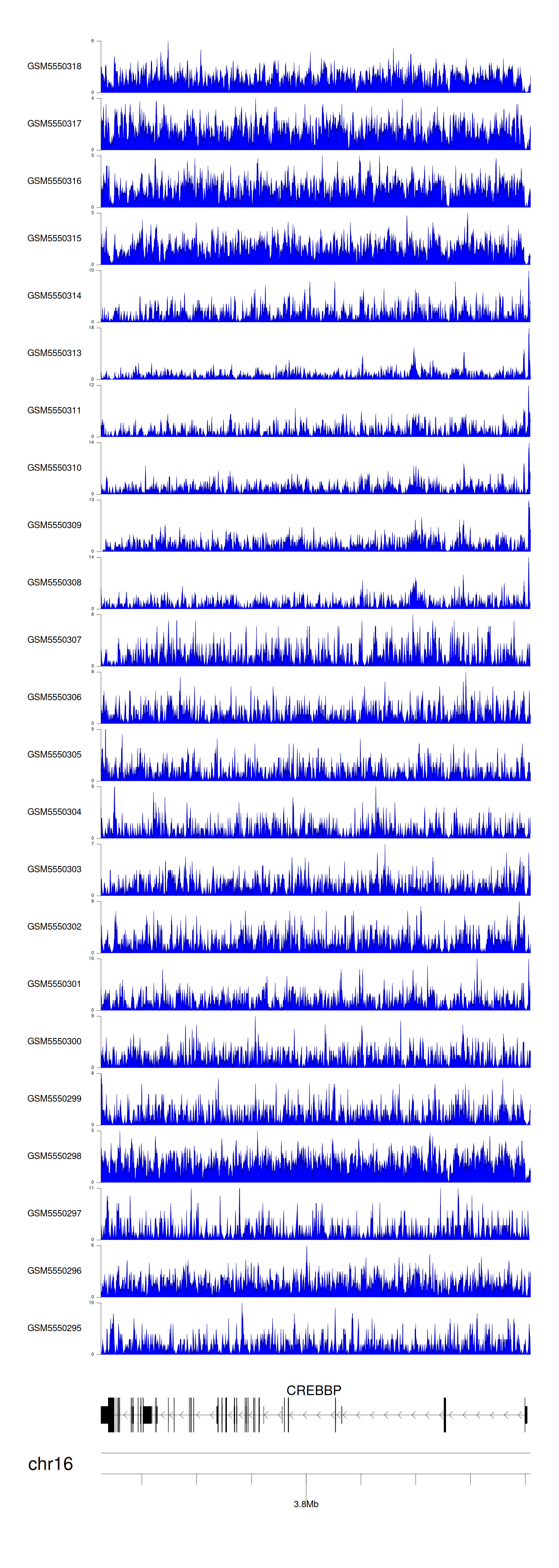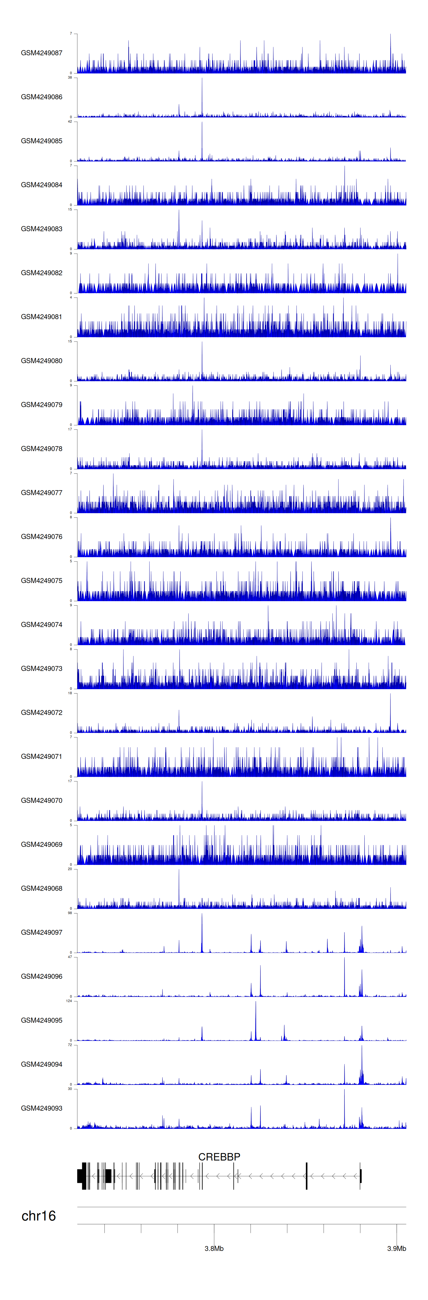 This gene is ubiquitously expressed and is involved in the transcriptional coactivation of many different transcription factors. First isolated as a nuclear protein that binds to cAMP-response element binding protein (CREB), this gene is now known to play critical roles in embryonic development, growth control, and homeostasis by coupling chromatin remodeling to transcription factor recognition. The protein encoded by this gene has intrinsic histone acetyltransferase activity and also acts as a scaffold to stabilize additional protein interactions with the transcription complex. This protein acetylates both histone and non-histone proteins. This protein shares regions of very high sequence similarity with protein p300 in its bromodomain, cysteine-histidine-rich regions, and histone acetyltransferase domain. Mutations in this gene cause Rubinstein-Taybi syndrome (RTS). Chromosomal translocations involving this gene have been associated with acute myeloid leukemia. Alternative splicing results in multiple transcript variants encoding different isoforms. [provided by RefSeq, Feb 2009] |