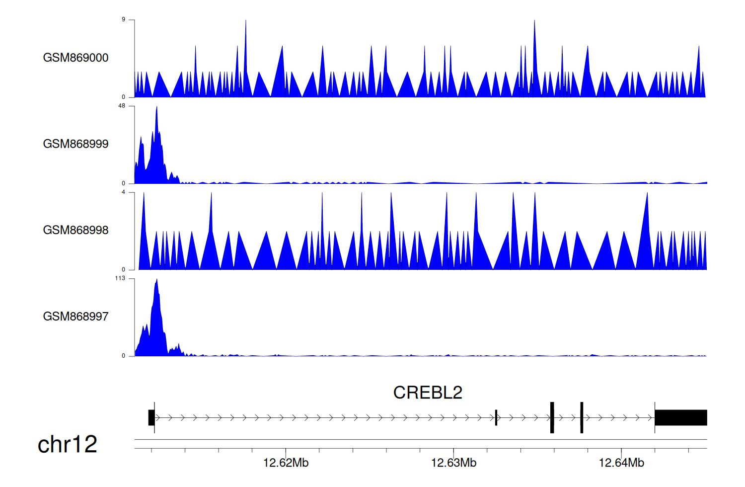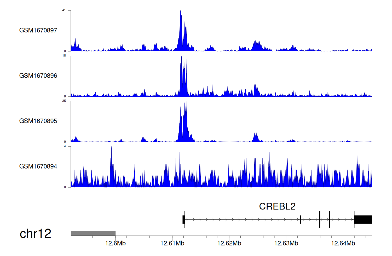 > Dataset: GSE68402 - CREBL2 peak across samples