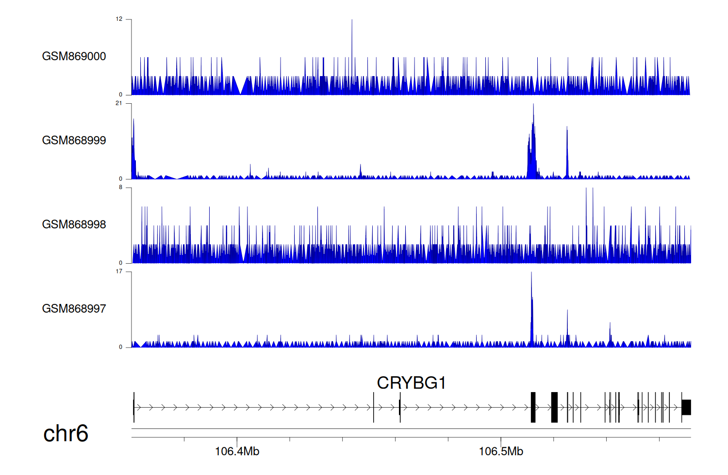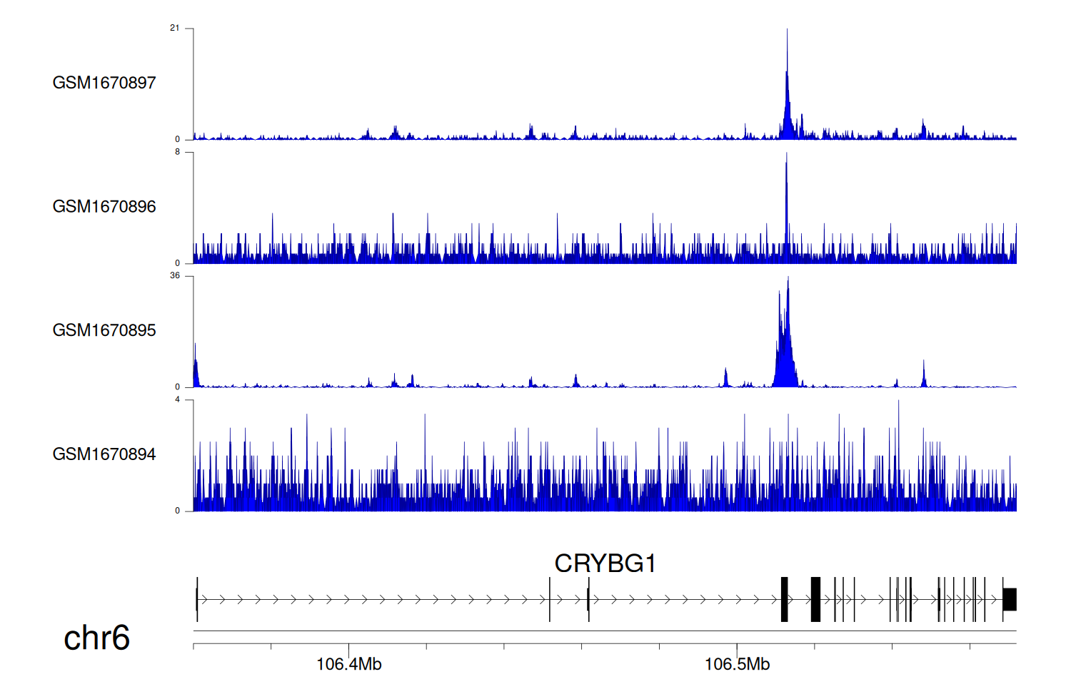 > Dataset: GSE68402 - CRYBG1 peak across samples