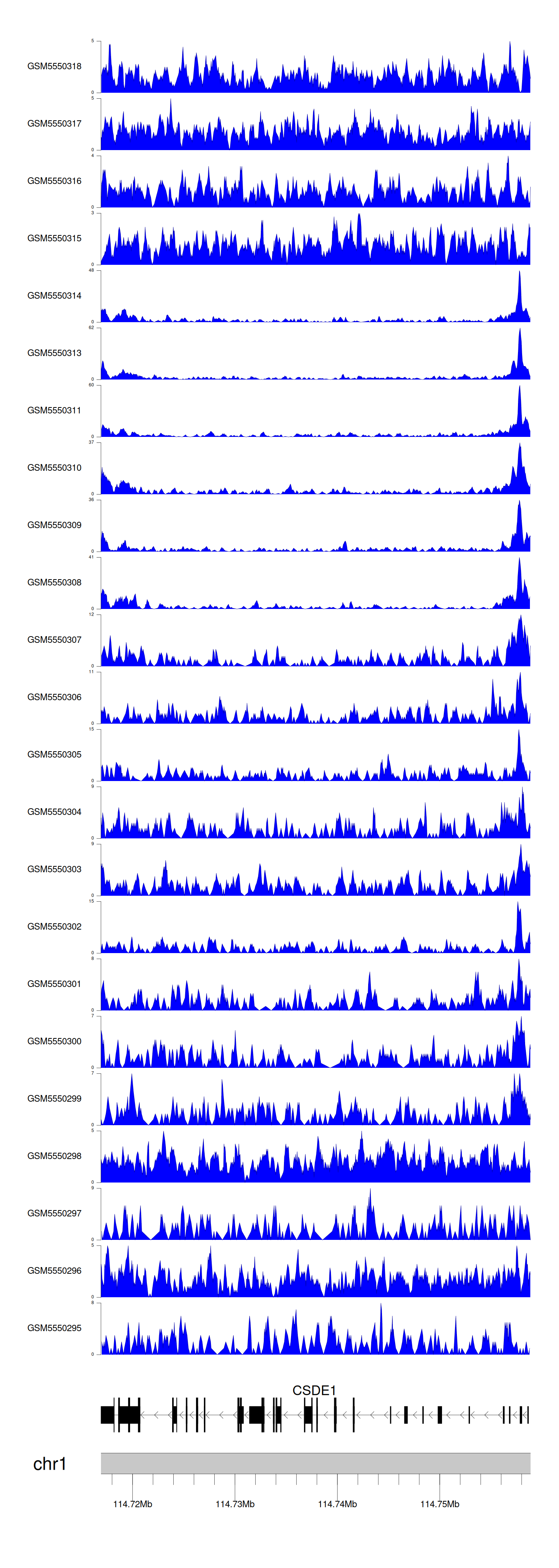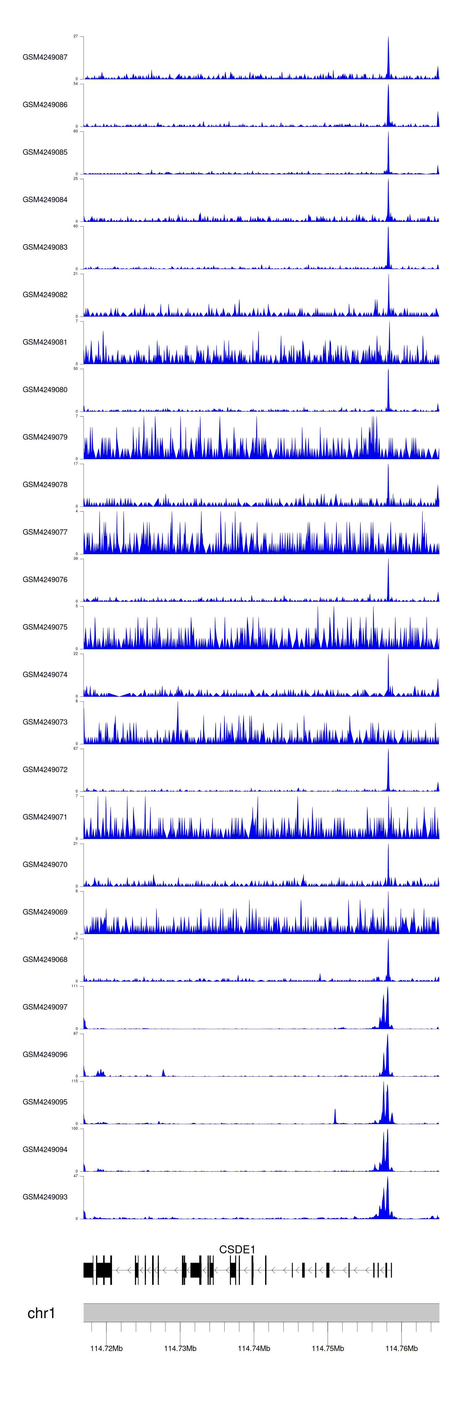 > Dataset: GSE143026 - CSDE1 peak across samples