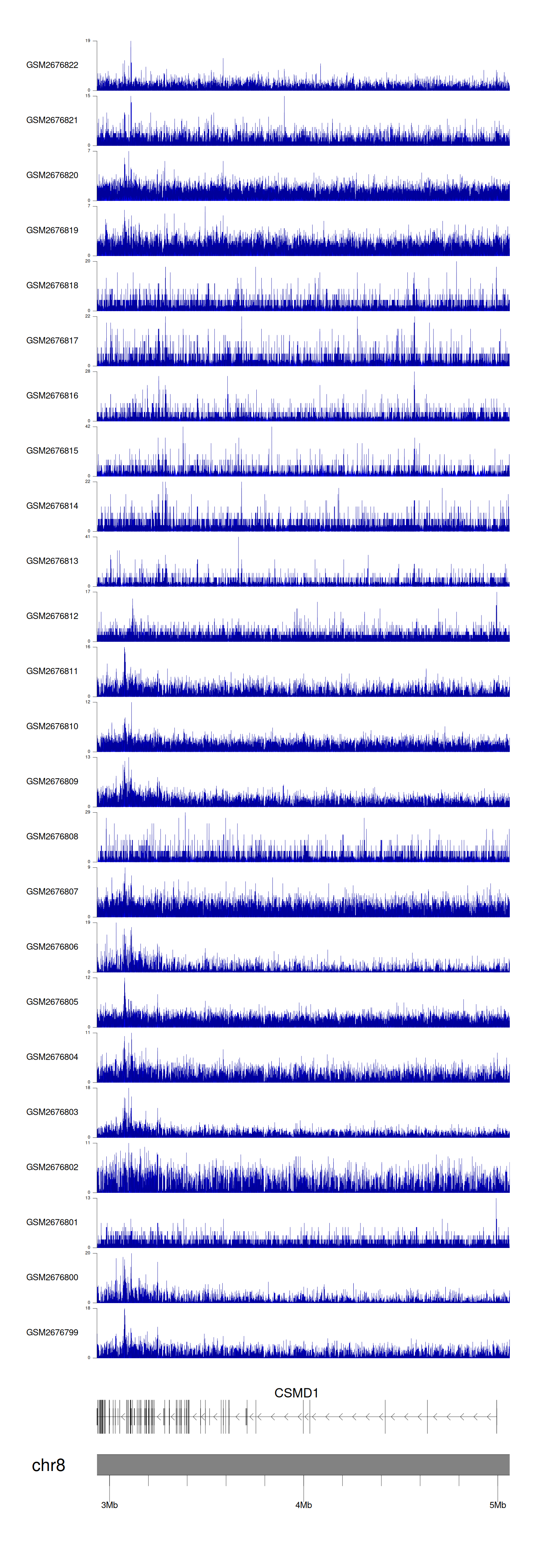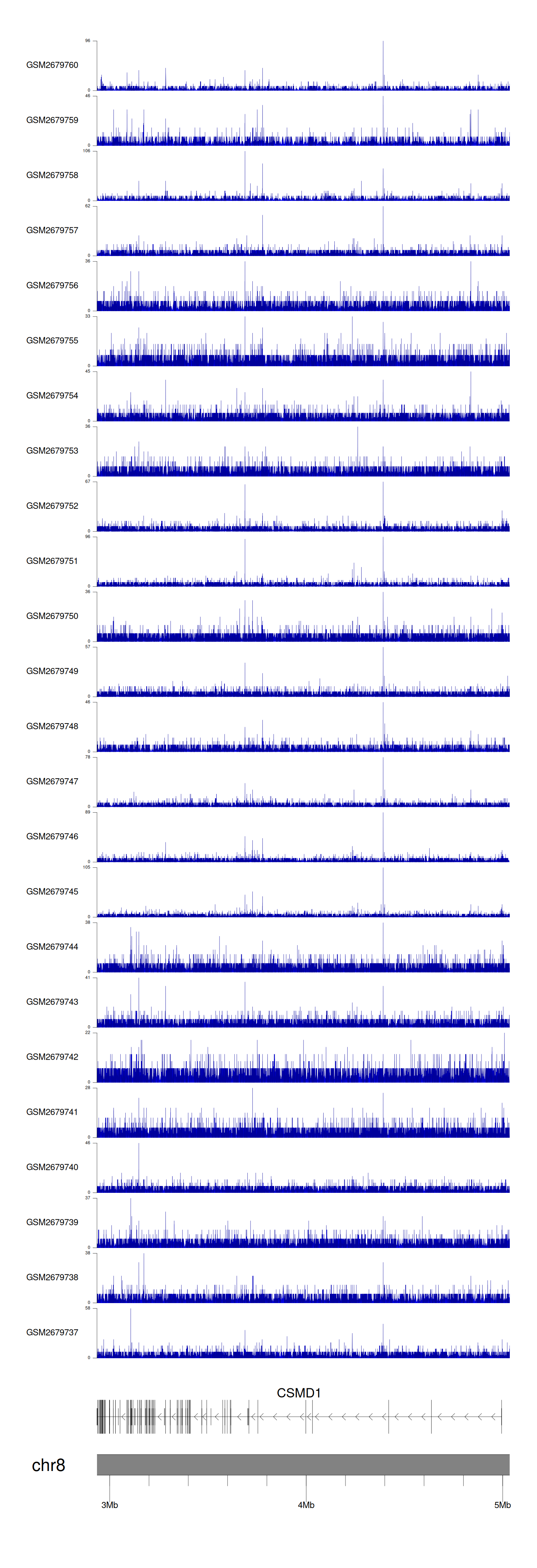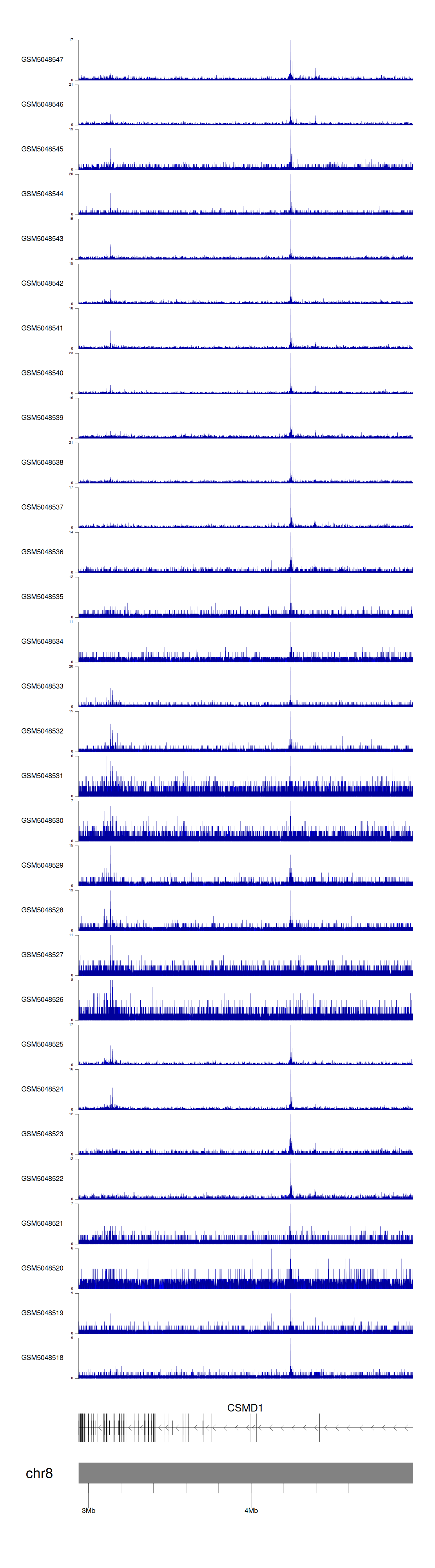 > Dataset: GSE30738 - CSMD1 peak across samples