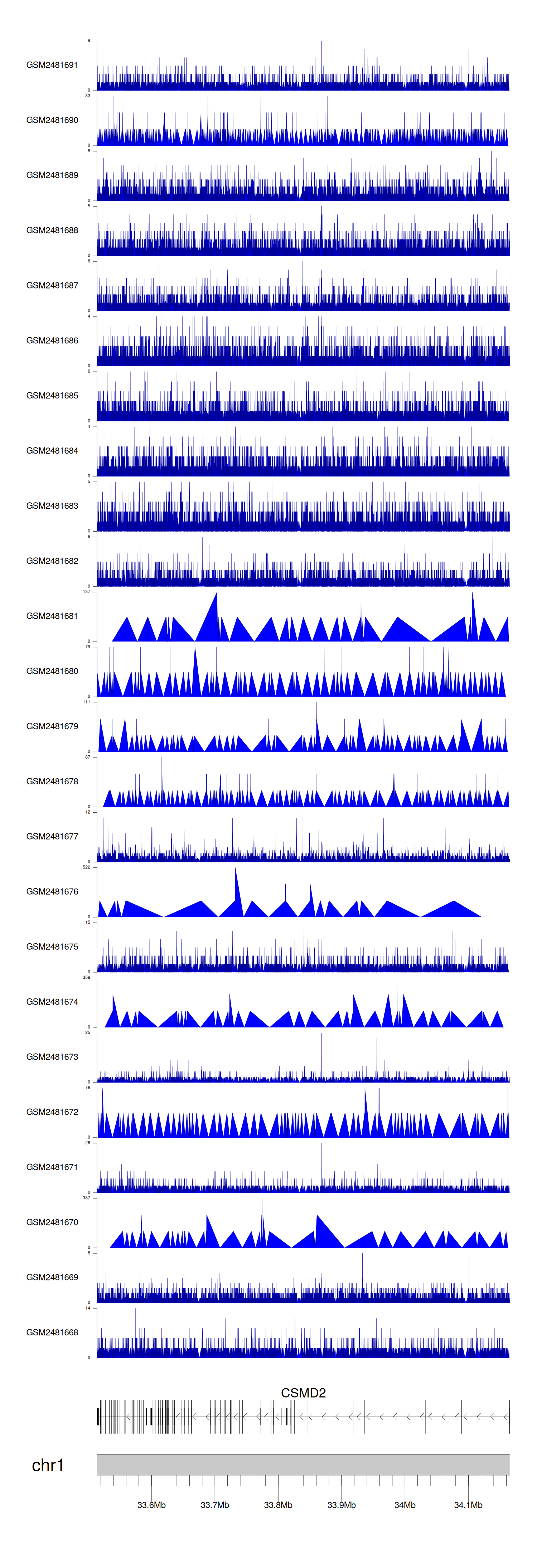 > Dataset: GSE94732 - CSMD2 peak across samples
