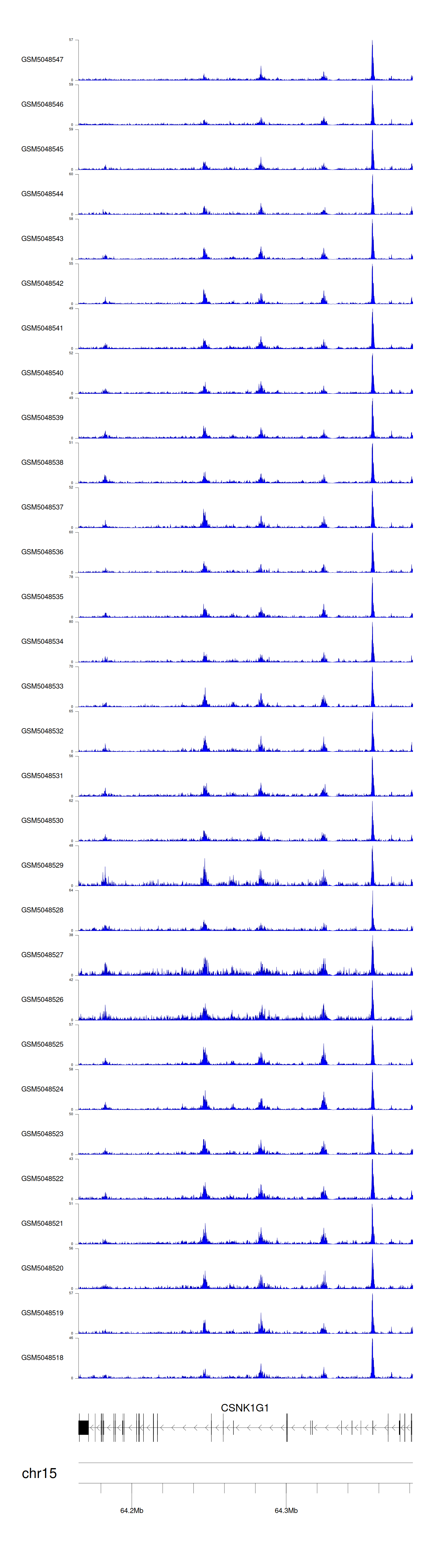 > Dataset: GSE30738 - CSNK1G1 peak across samples