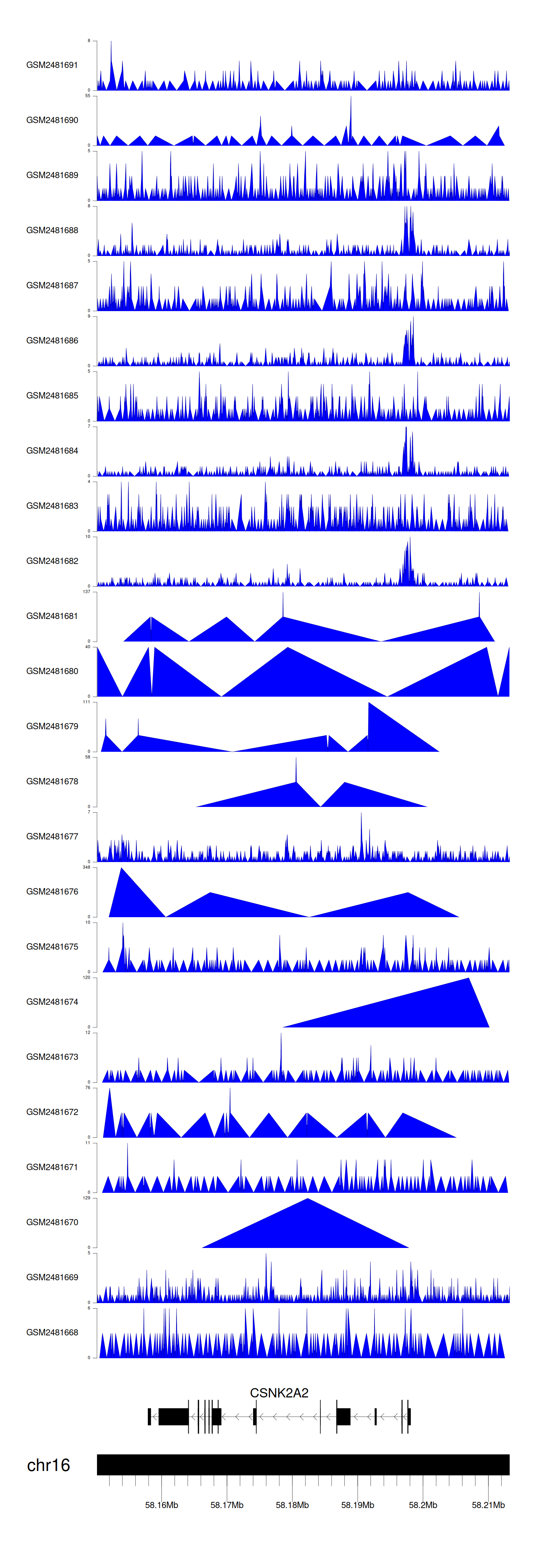 > Dataset: GSE94732 - CSNK2A2 peak across samples