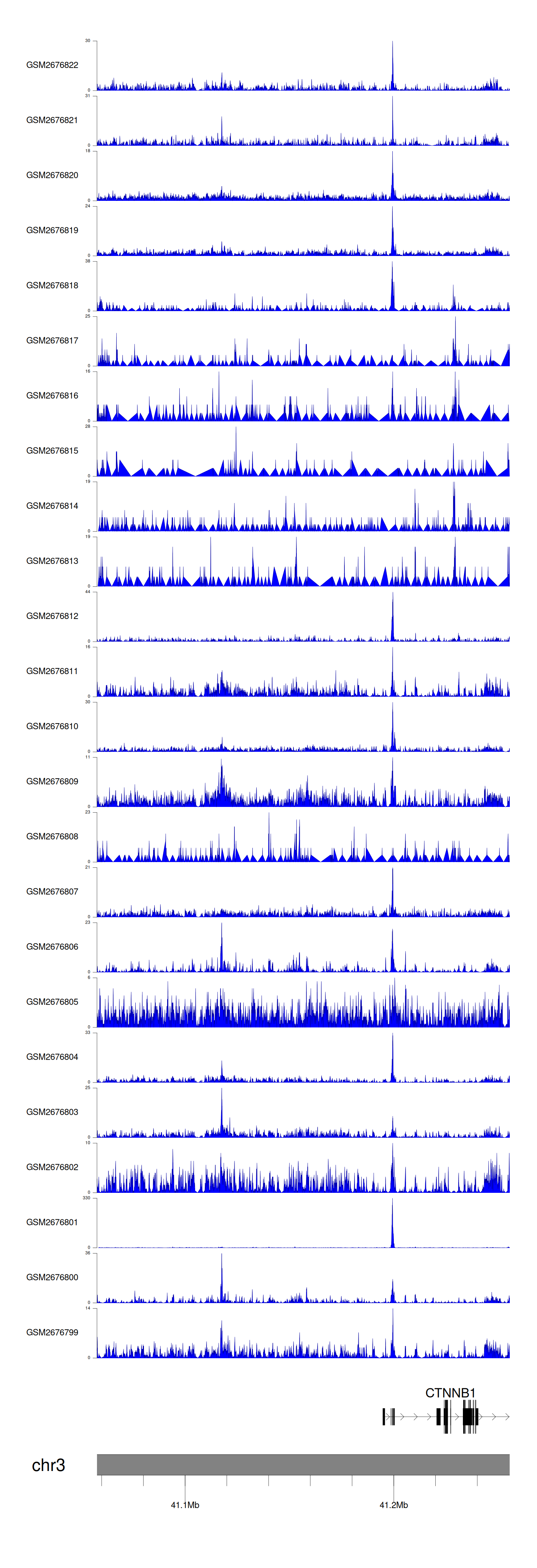 > Dataset: GSE100376 - CTNNB1 peak across samples