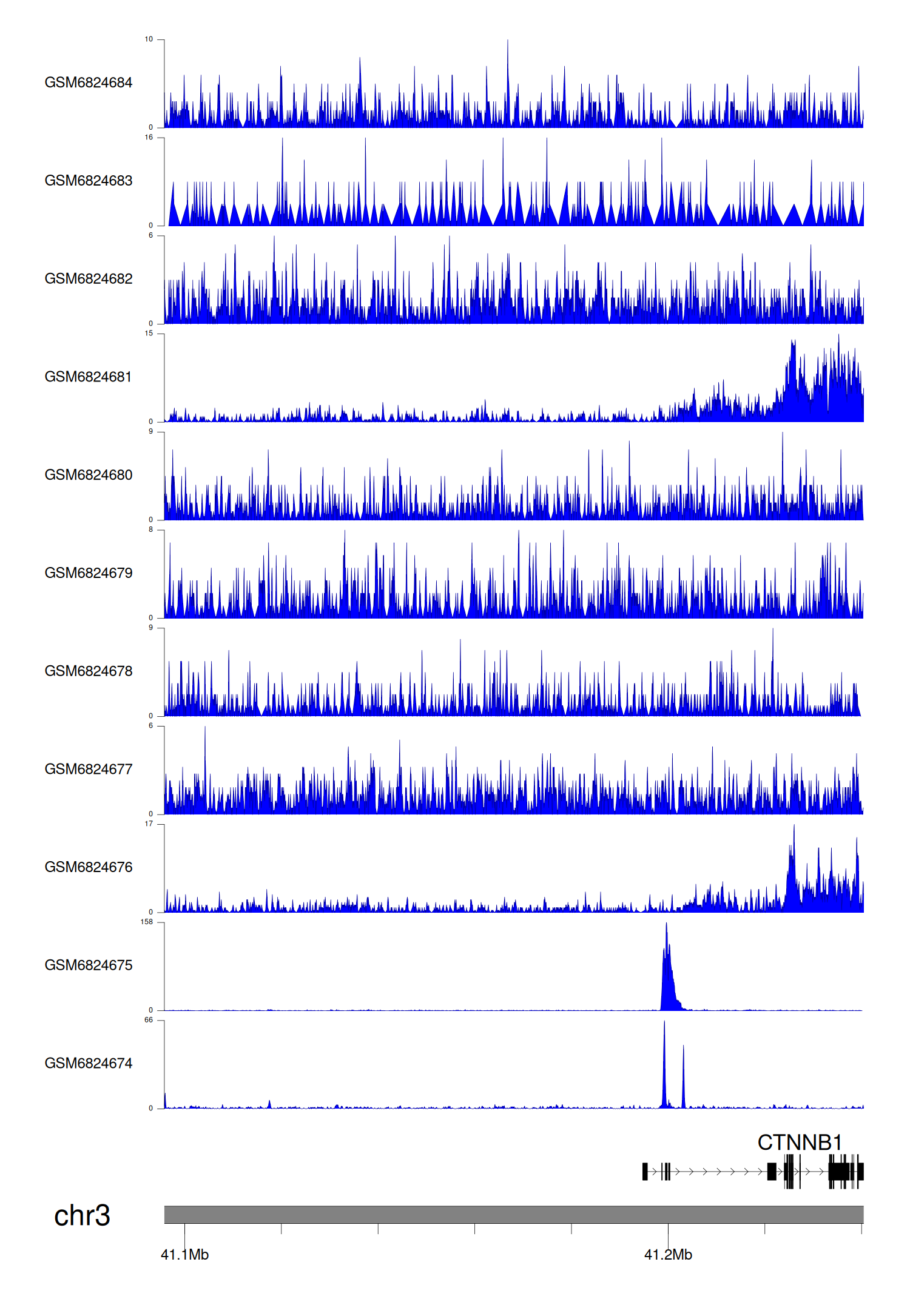 > Dataset: GSE144329 - CTNNB1 peak across samples