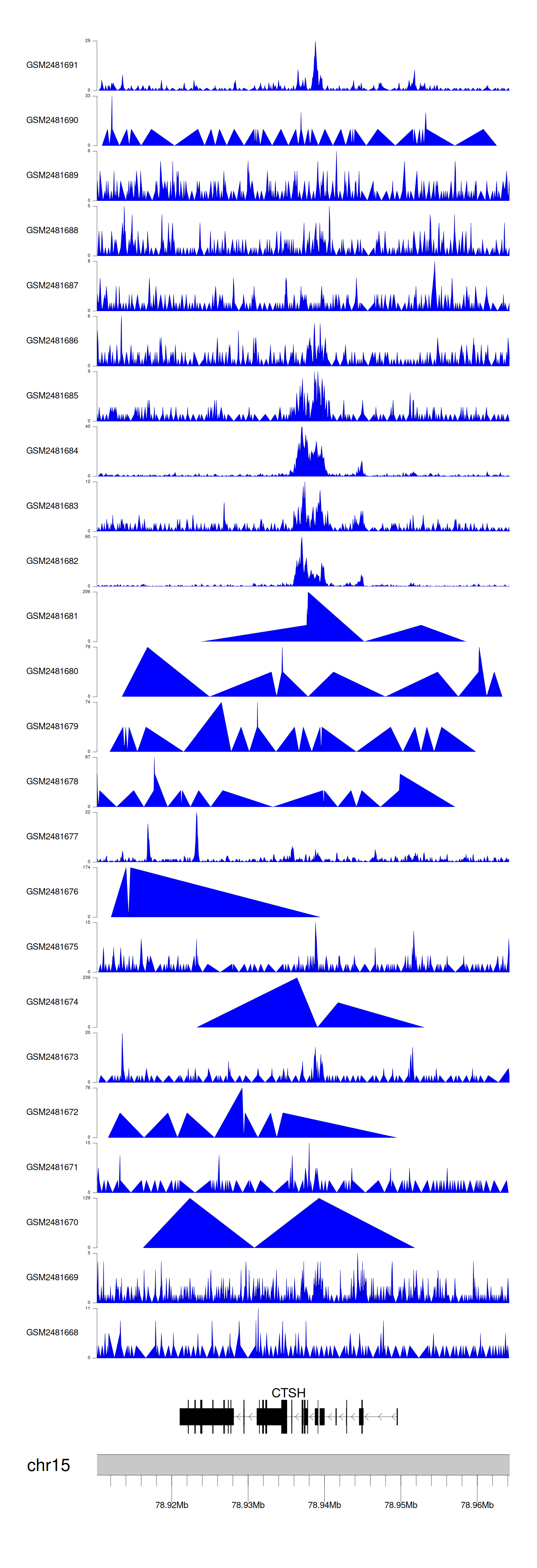 > Dataset: GSE94732 - CTSH peak across samples