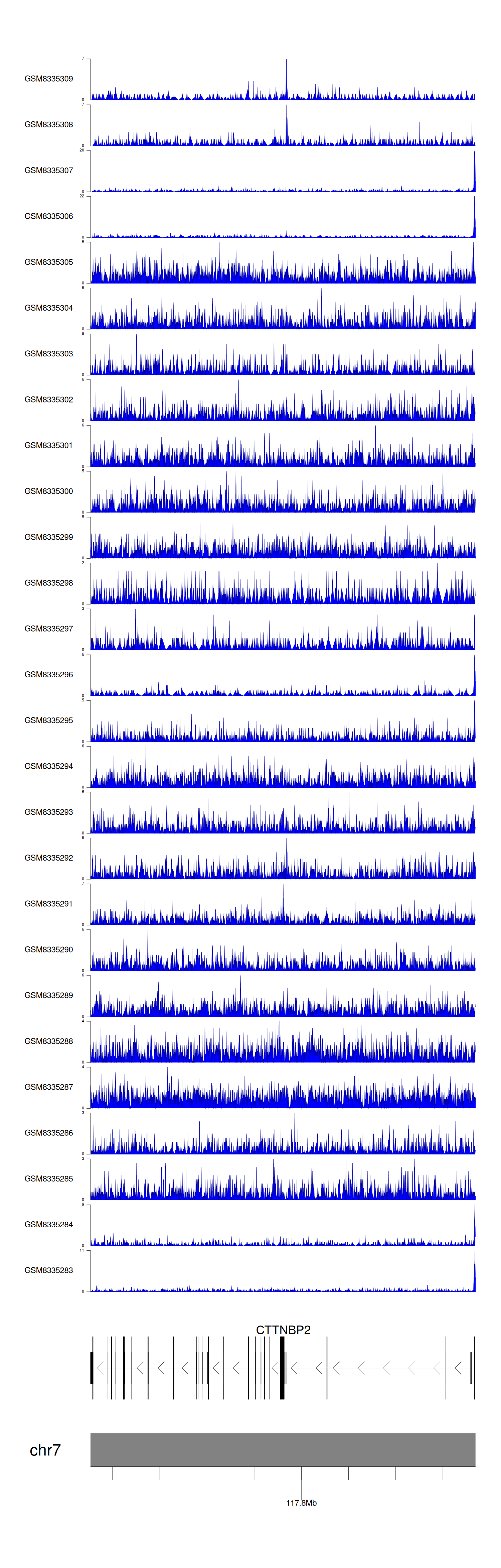 > Dataset: GSE270130 - CTTNBP2 peak across samples