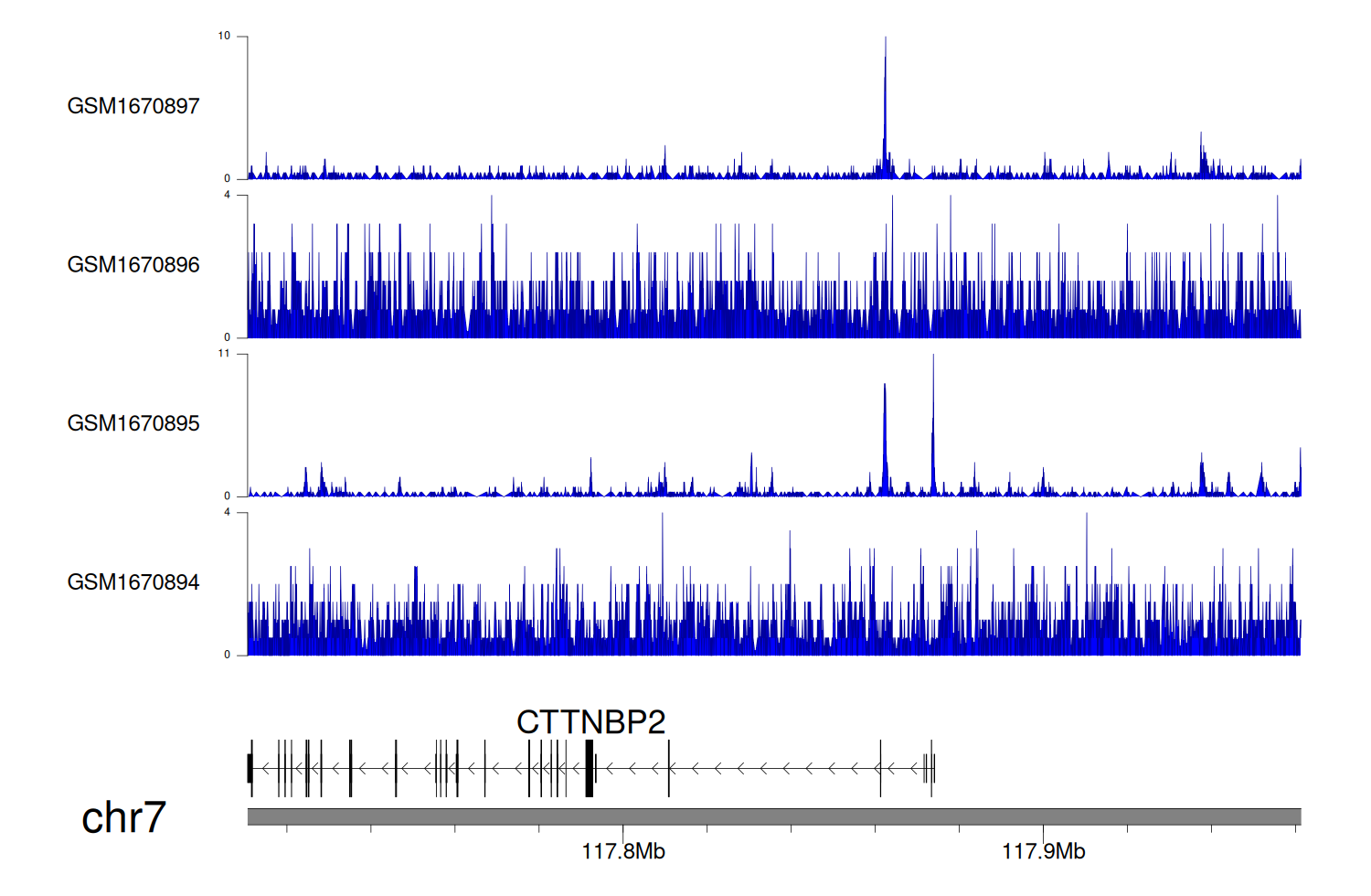 > Dataset: GSE68402 - CTTNBP2 peak across samples