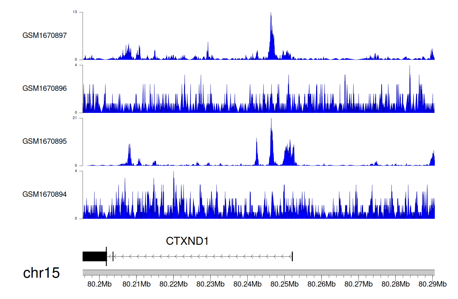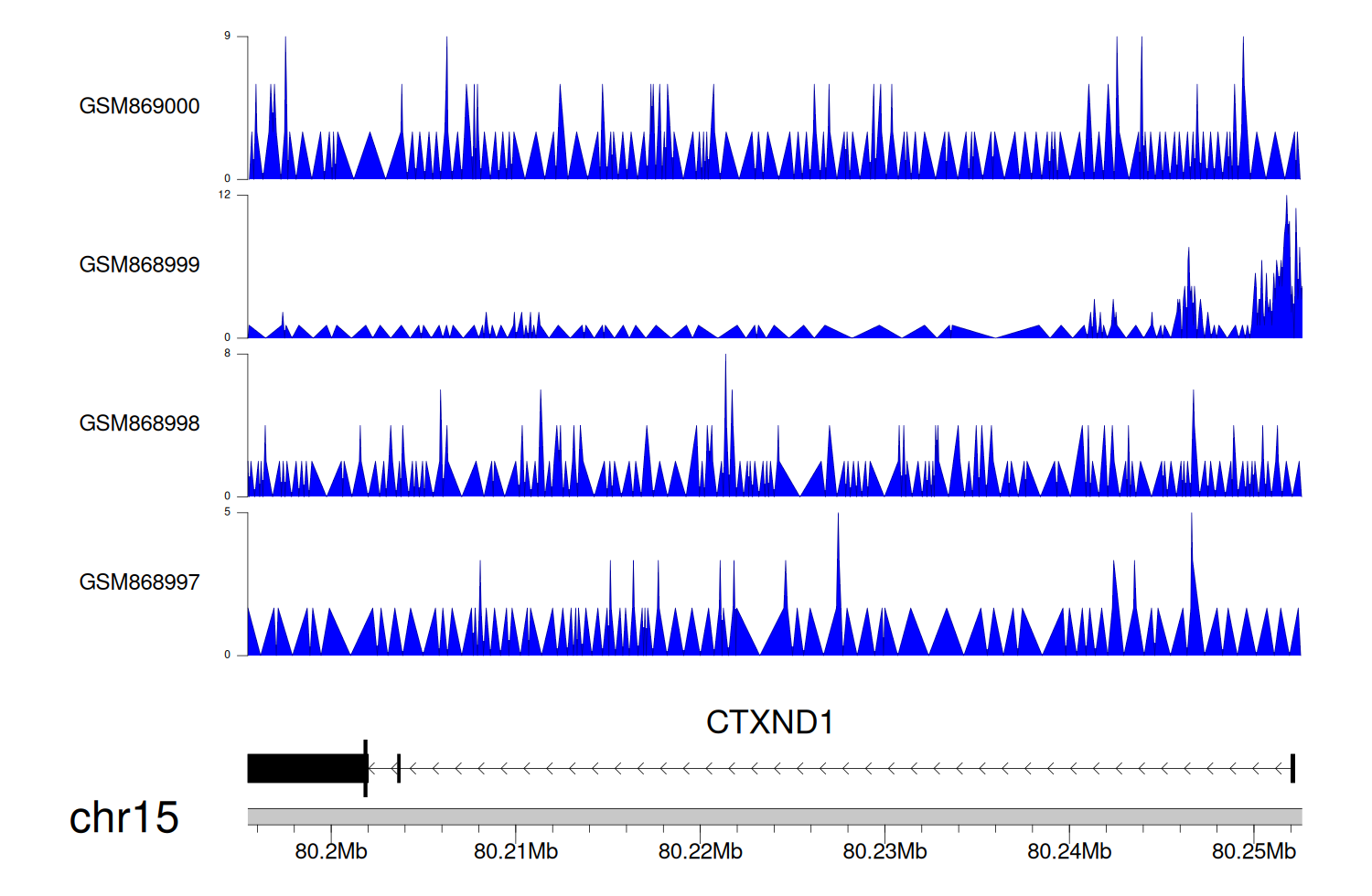> Dataset: GSE68402 - CTXND1 peak across samples