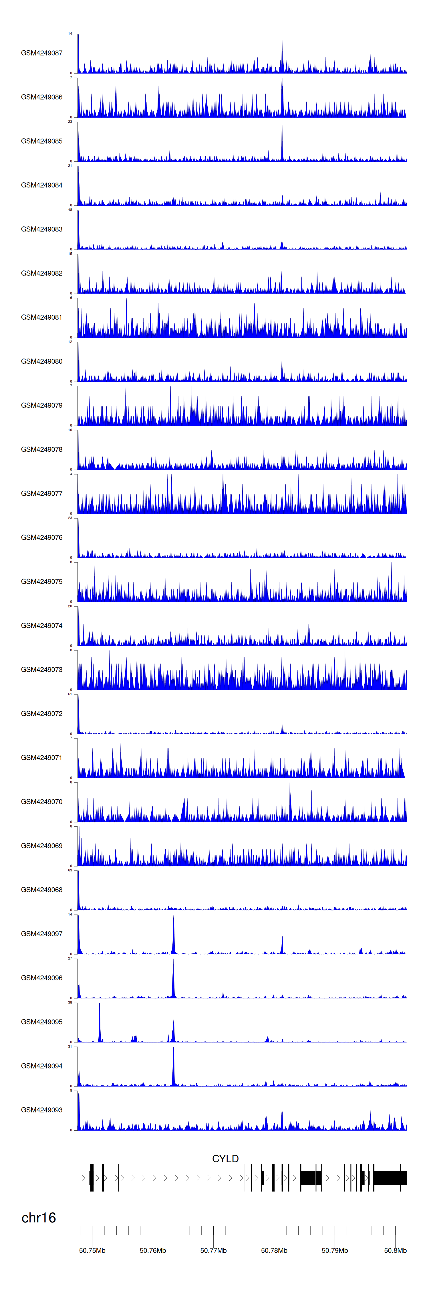Summary This gene is encodes a cytoplasmic protein with three cytoskeletal-associated protein-glycine-conserved (CAP-GLY) domains that functions as a deubiquitinating enzyme. Mutations in this gene have been associated with cylindromatosis, multiple familial trichoepithelioma, and Brooke-Spiegler syndrome. Alternate transcriptional splice variants, encoding different isoforms, have been characterized. [provided by RefSeq, Jul 2008]