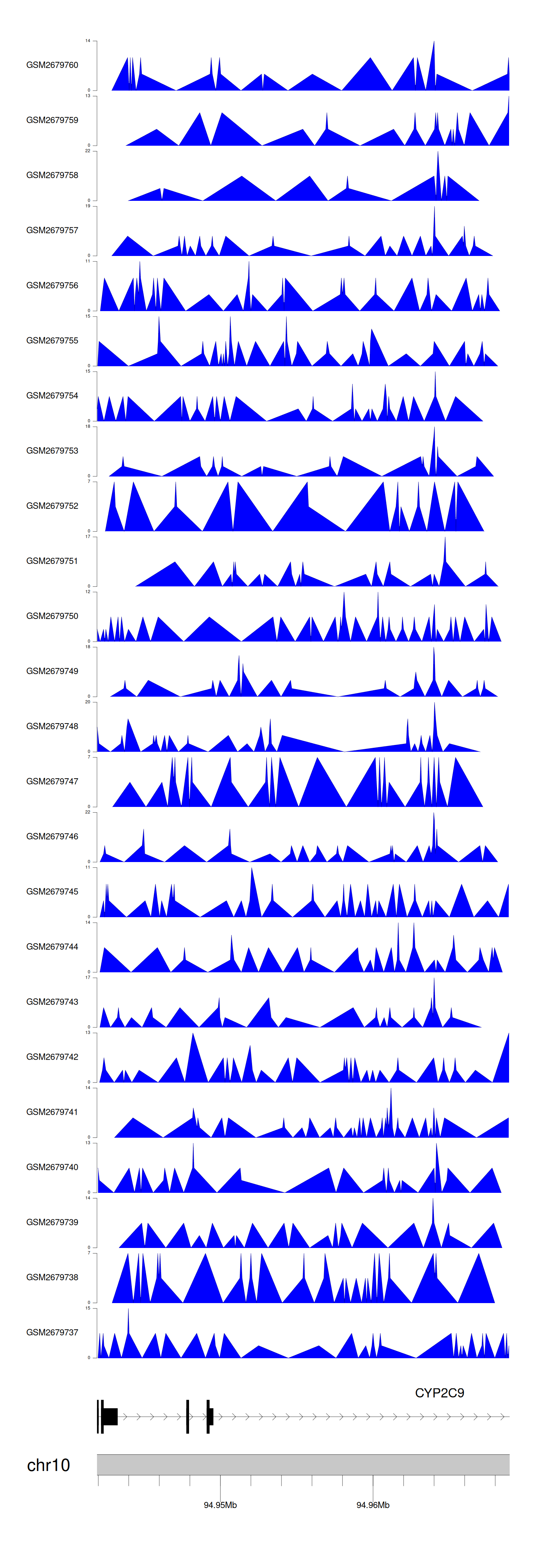 > Dataset: GSE100376 - CYP2C9 peak across samples