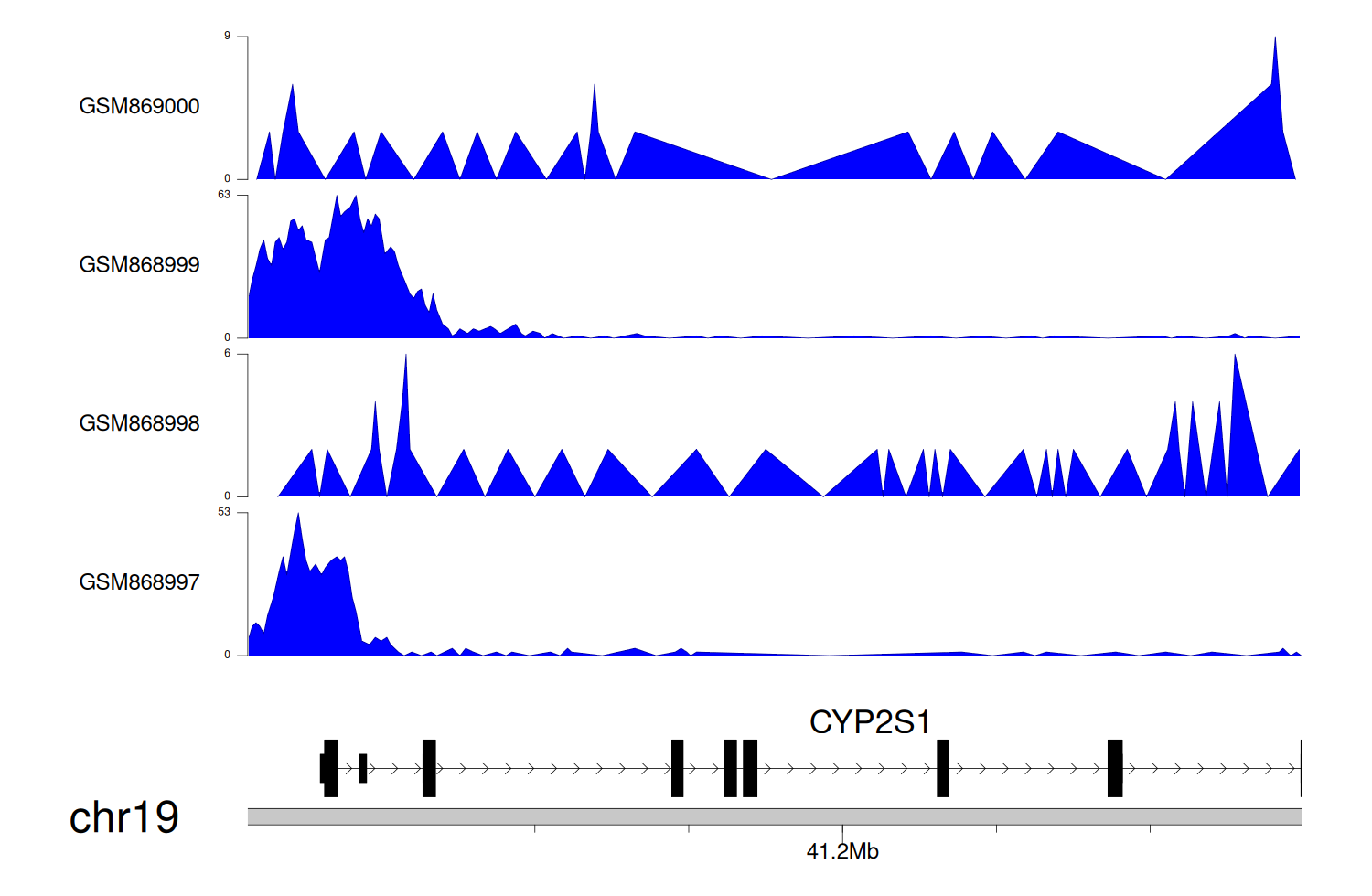 > Dataset: GSE131257 - CYP2S1 peak across samples