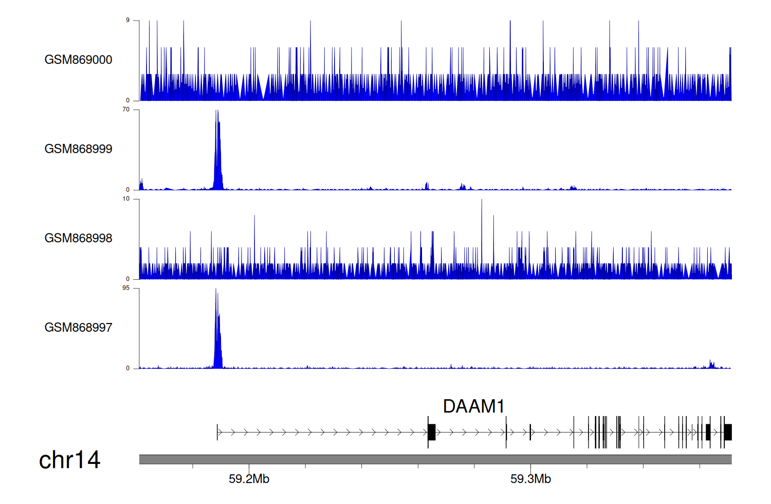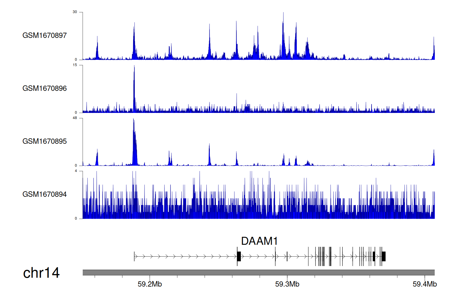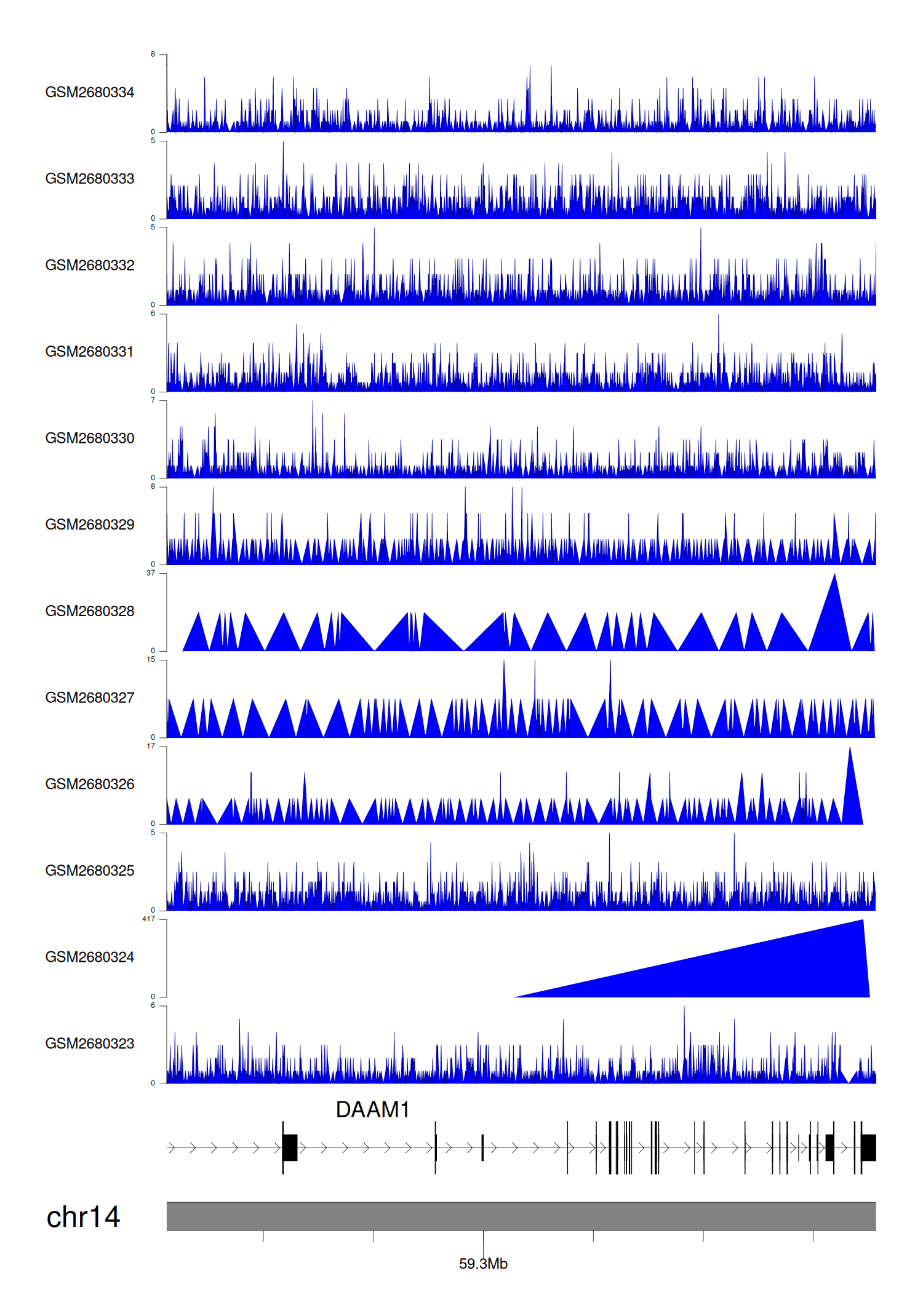 > Dataset: GSE68402 - DAAM1 peak across samples