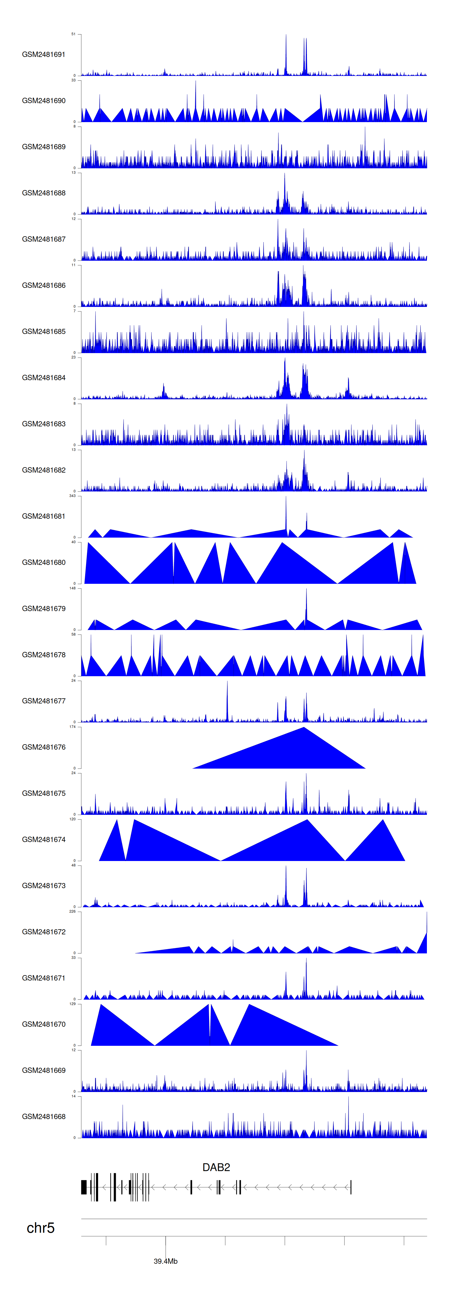 > Dataset: GSE94732 - DAB2 peak across samples
