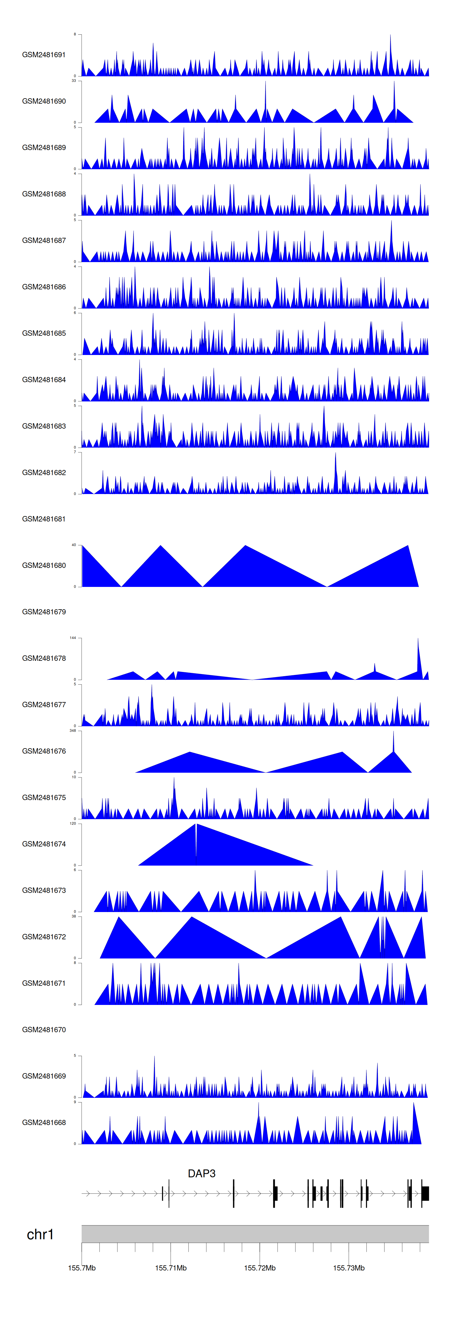 > Dataset: GSE94732 - DAP3 peak across samples