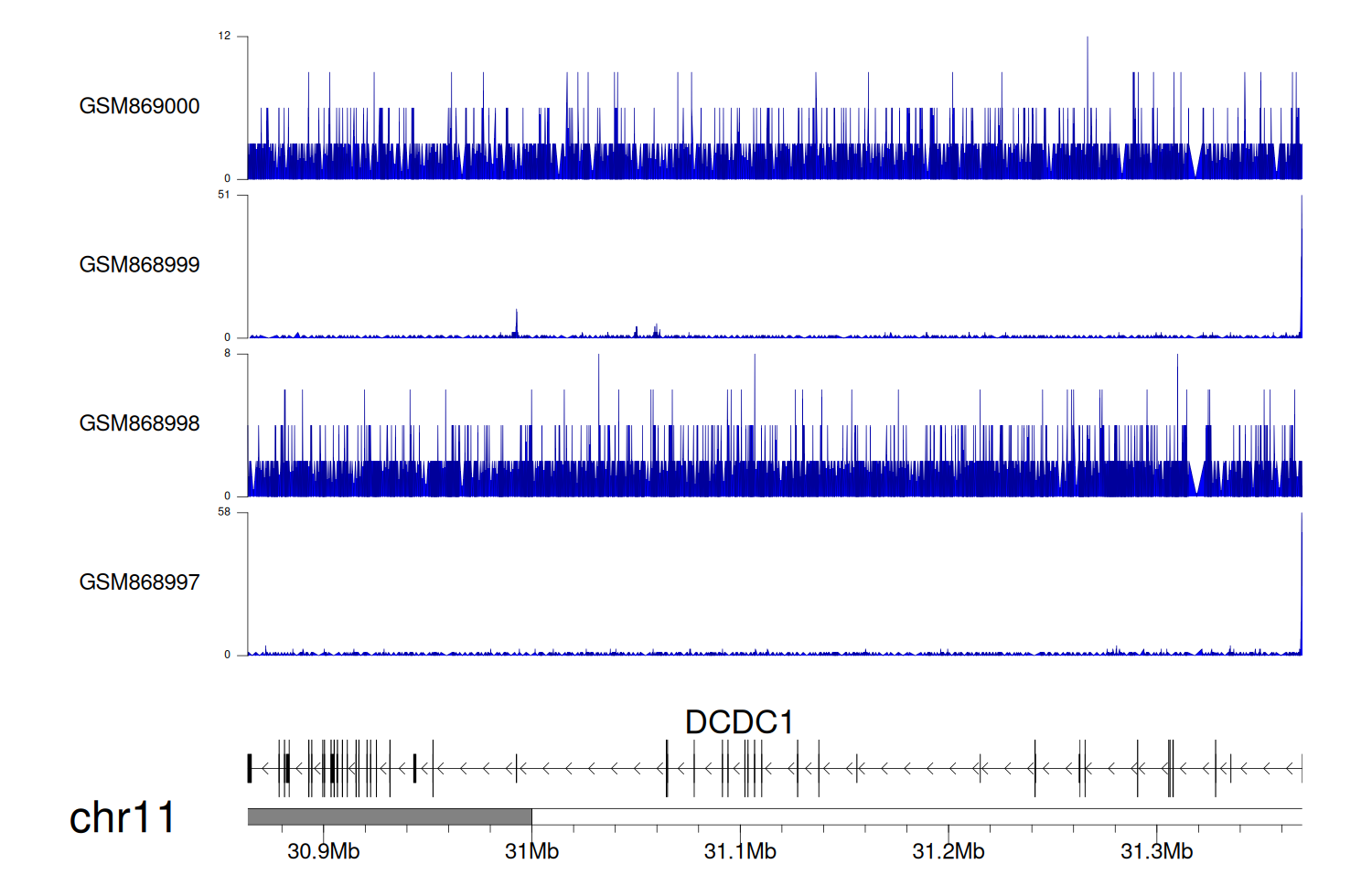 > Dataset: GSE100400 - DCDC1 peak across samples