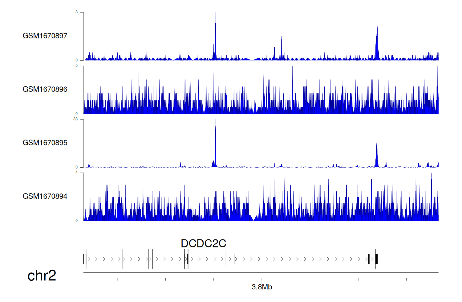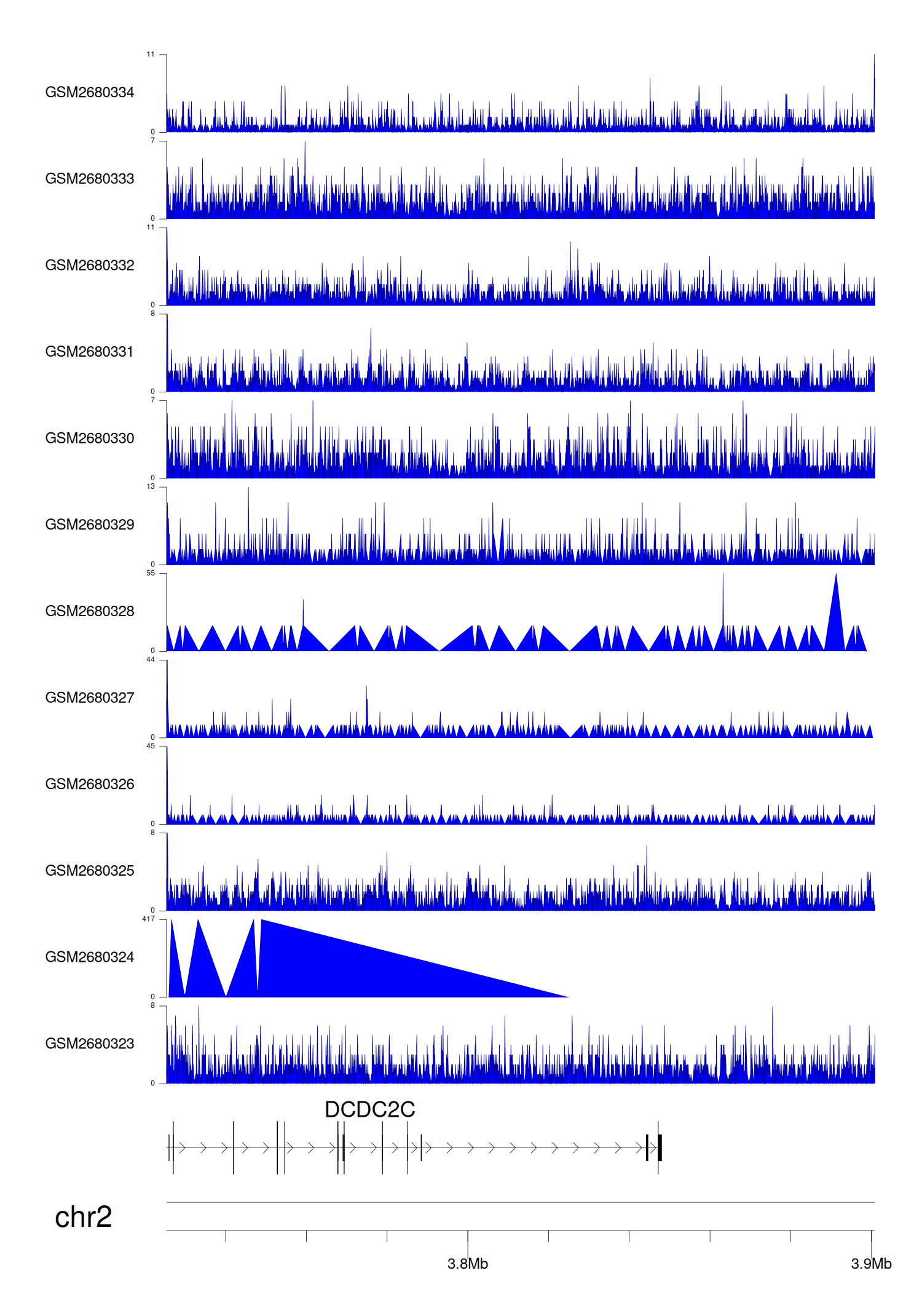 > Dataset: GSE100400 - DCDC2C peak across samples